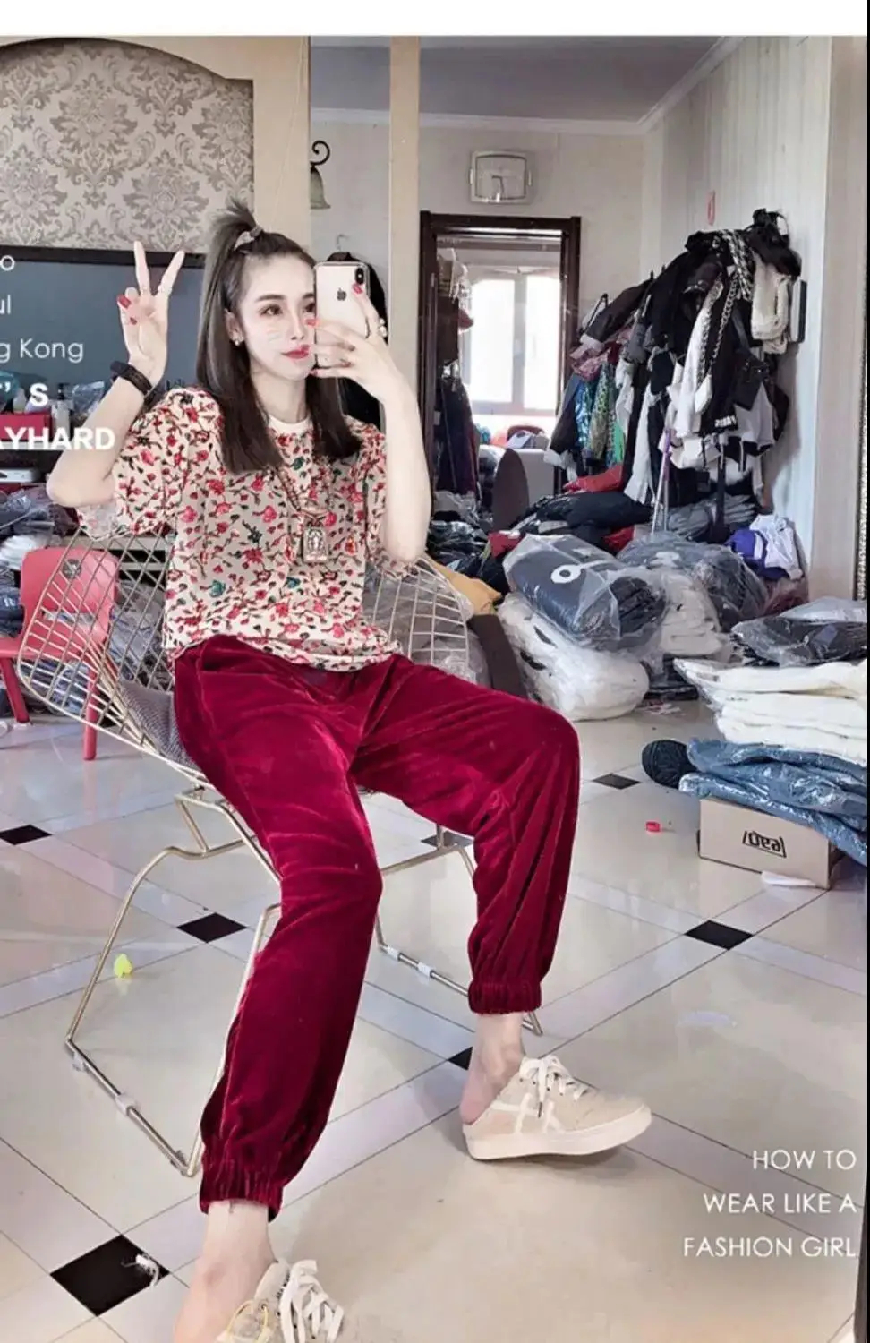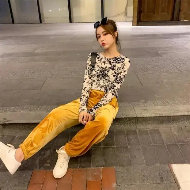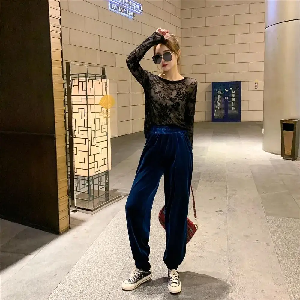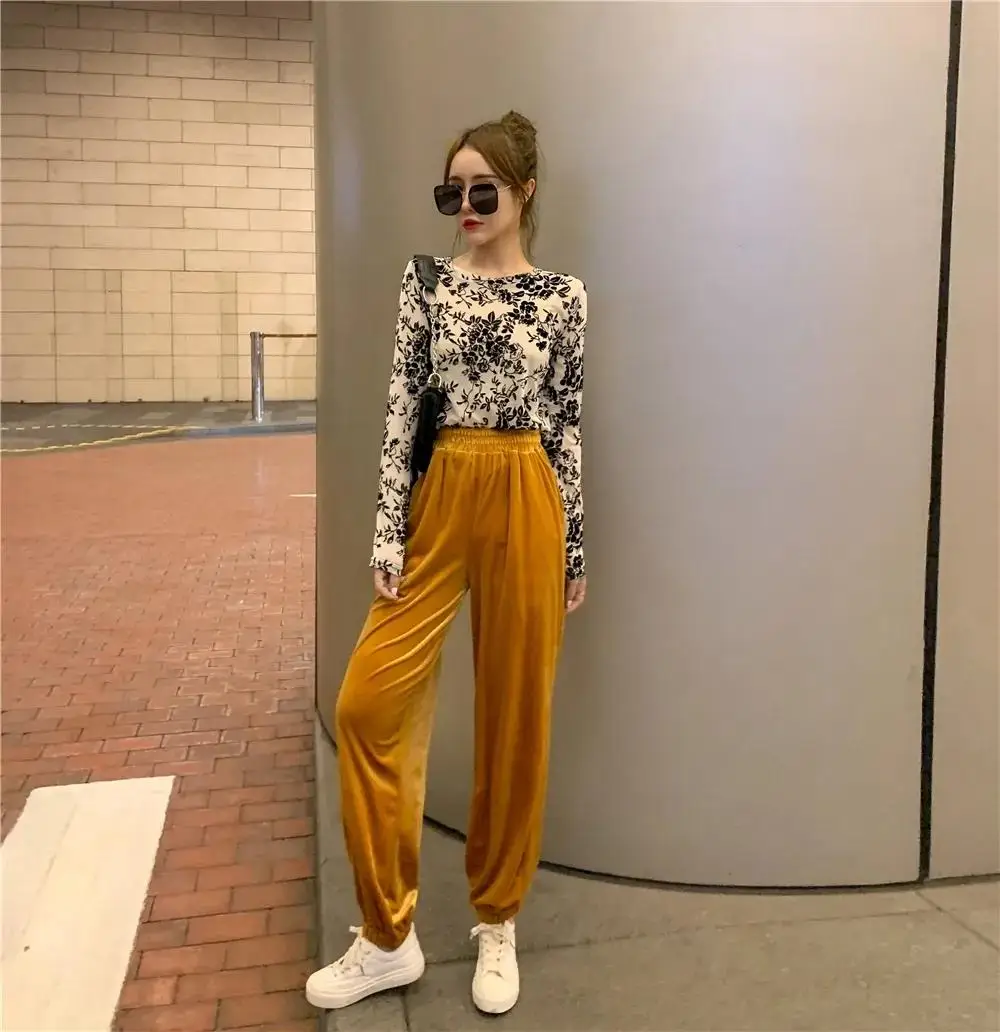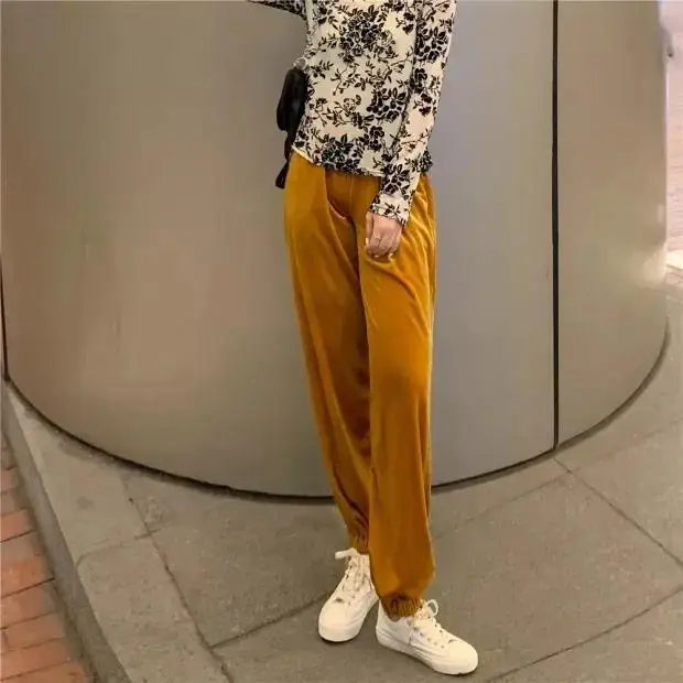 Женские длинные брюки с эластичной резинкой на талии, повседневные брюки красного, синего, зеленого, серого цветов, Осень-зима