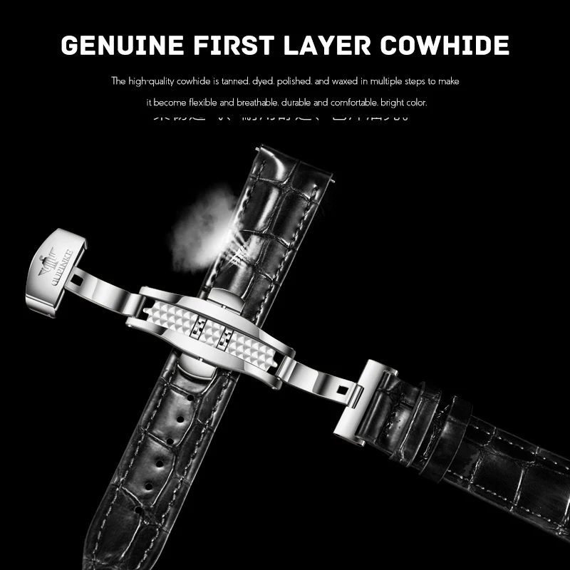 Ремешок изготовлен из первый слой из воловьей кожи, более гибкий, дышащий и удобный