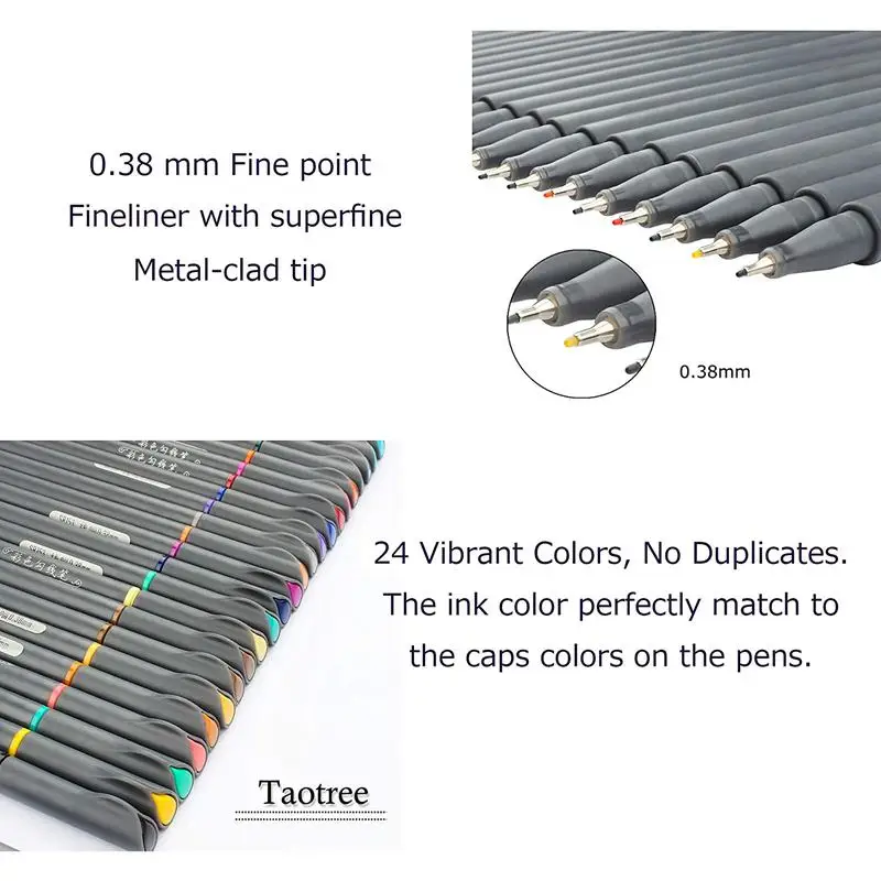 24 ярких цвета, без дубликатов, 0,38 мм тонкая точка, идеально подходит для рисования линий и деталей, живописи, письма, эскиза, маркера, подписи, манги, анимации, графики, дизайна, планировщика, книга по математике, домашние работы, счета, календарь, иллюстрации, включая художников, изящные рисунки чернил и Раскрашивание мелких замысловатых узоров