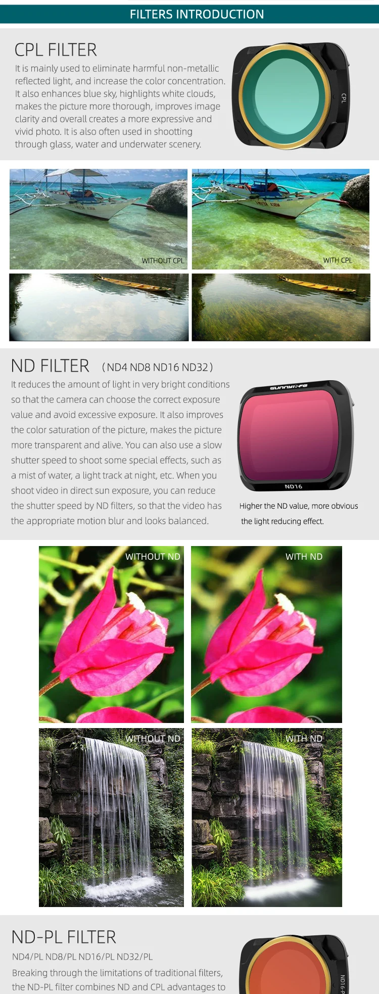 -Фильтры CPL и ND-PL регулируются. Вы можете повернуть золотые круги, чтобы получить удовлетворенный угол для ваших требований о поляризации.