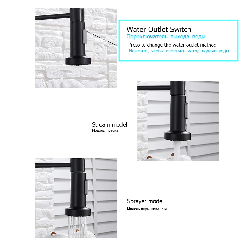 Смеситель для кухни Frap F4457 силикагелевый вращающийся на 360 градусов черный цвет