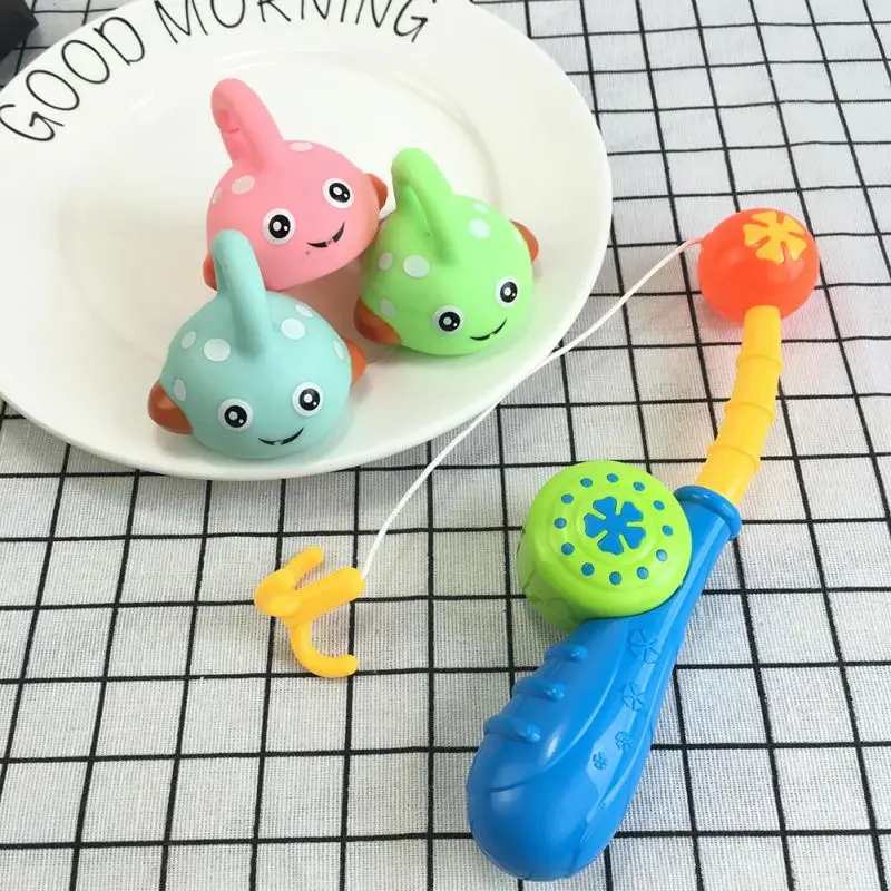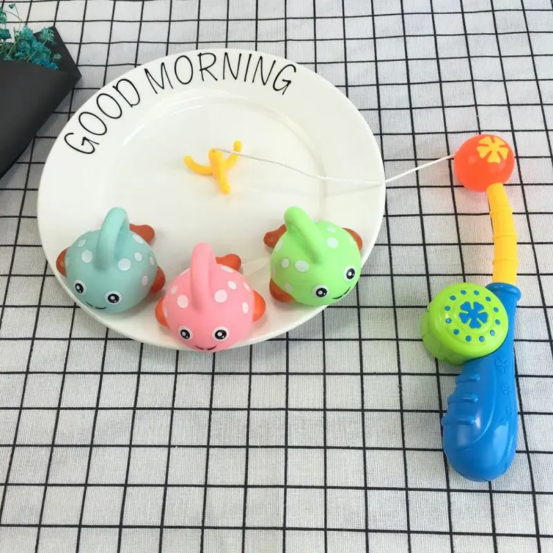 Набор игрушек для ванной содержит 1 удочку (случайный цвет) и 3 рыбки