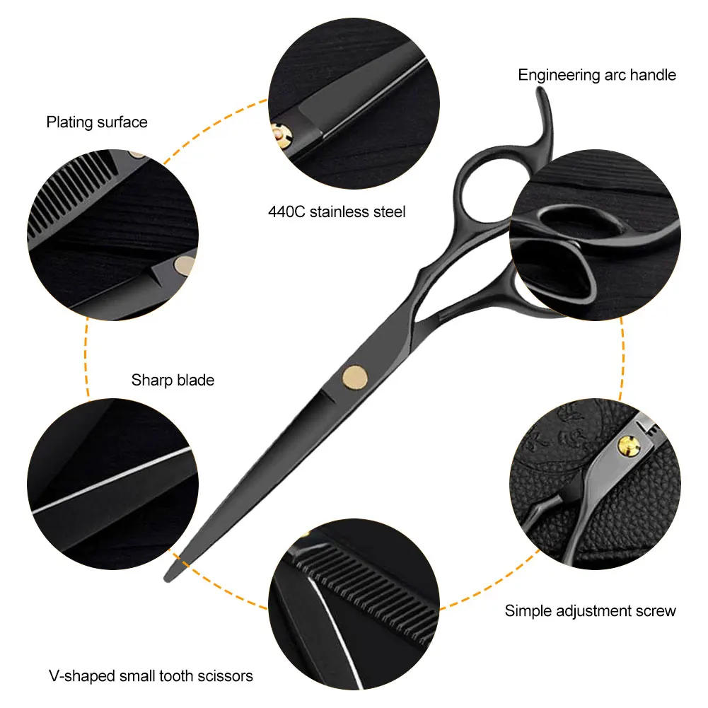1. Ножницы для стрижки волос: набор ножниц для стрижки волос включает ножницы для стрижки волос * 1, филировочные ножницы * 1, расческа для бритвы * 1, клипсы * 2, расческа для волос * 1, накидка для парикмахера * 1; включает в себя все, что вам нужно, чтобы сделать профессиональную стрижку или создать идеальный стильный вид, Также это избавит вас от дорогостоящей отделки салона, сделав свою собственную обшивку дома. 2. Премиум Материал: Профессиональные Парикмахерские ножницы изготовлены из высококачественной японской нержавеющей стали 440C, они отличаются отличной прочностью, острыми и износостойкими, антикоррозийными свойствами, термостойкость и устойчивость к цвету, обеспечивая превосходную резку каждый раз; Легко создавать идеальную отделку. Обрежьте и избегайте повреждения или расщепления кончиков волос. 3. Эргономичный дизайн: профессиональные машинки для стрижки волос поставляются с регулировочными винтами, и вы можете легко регулировать настройки этих ножниц для стрижки волос в соответствии с вашей герметичностью и напряжением. Уникальный дизайн ручки с легким захватом позволяет парикмахерским ножницами встряхивать пальцы, обеспечивая идеальную стрижку каждый раз. (Примечание: гребень включает в себя острую бритву и должен быть обработан с осторожностью, пожалуйста, держитесь подальше от младенцев и детей). 4. Широкое применение: Парикмахерские ножницы очень подходят для сотрудников салонов, парикмахеров и личных семей. Вы должны иметь парикмахерские инструменты в Вашем наборе, которые могут использовать как классические методы резки, так и современные методы резки; Ножницы преобразуют ваши волнистые густые волосы в светильник, эластичные локоны волос. И все хорошо помещается в кожаный чехол на молнии, поэтому его можно убрать для безопасного хранения. 5. Многократное использование: Парикмахерские ножницы подходят для мужчин, женщин, детей, студентов, молодых профессионалов.
