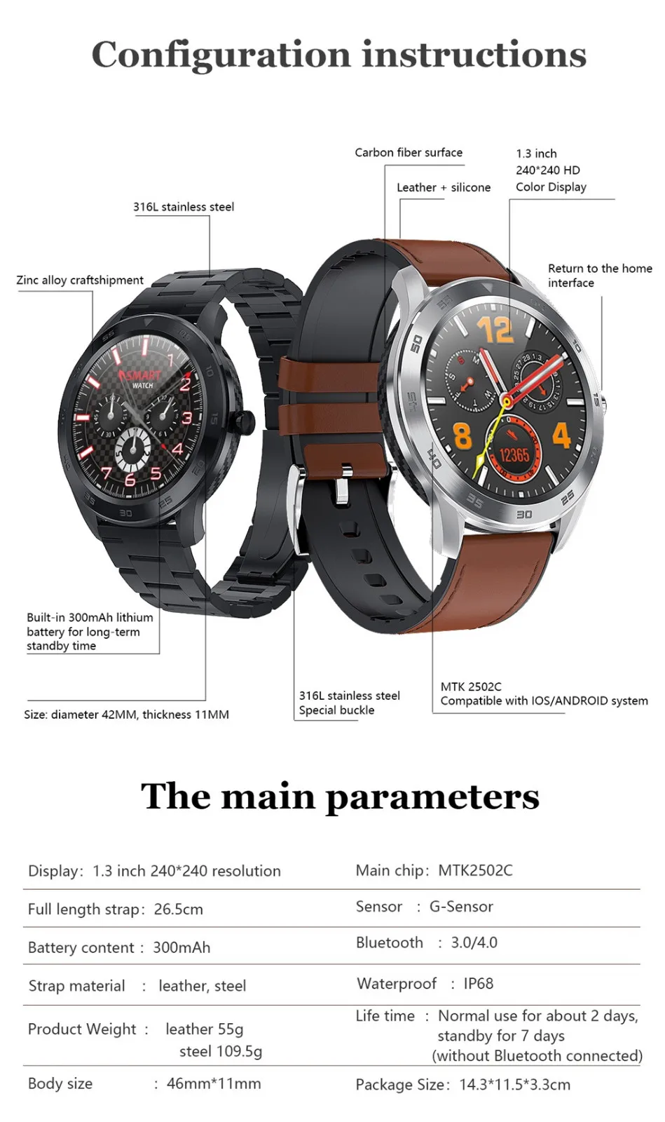 Wristband material :Leather, stainless steel (Extra gift silicone strap)