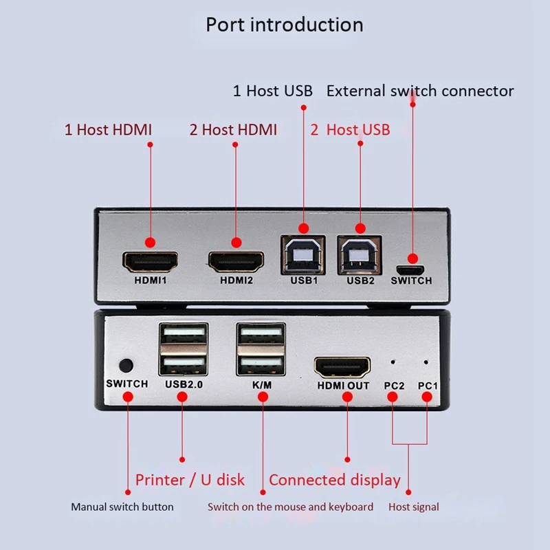 Концентратор поддерживает переключение одной кнопкой между 2 компьютерами для совместного использования 2 периферийных устройств USB 2,0 или HDMI без необходимости постоянно менять кабели.