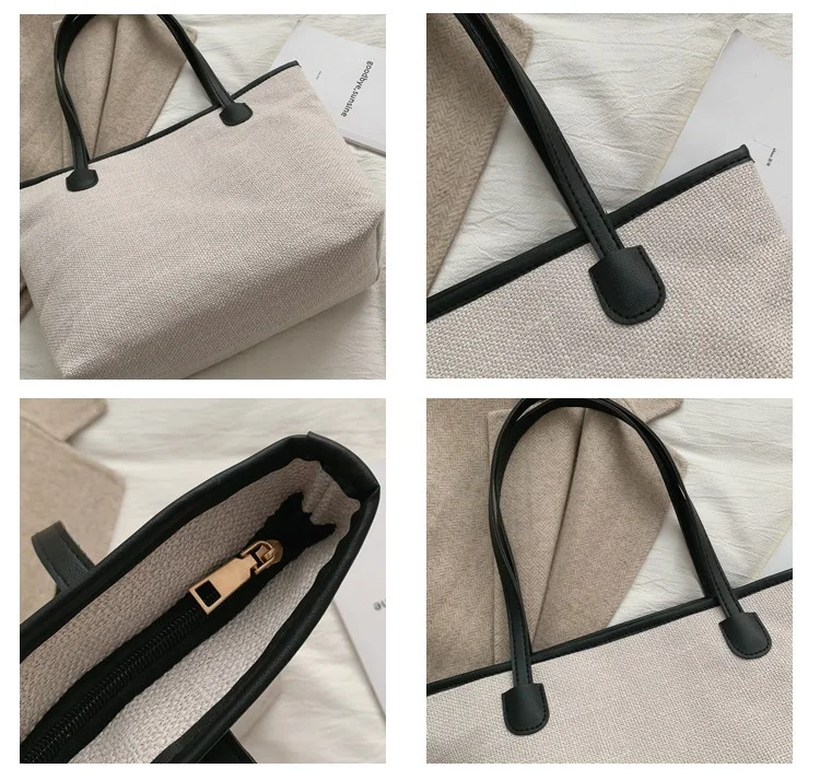 MJ женская Холщовая Сумка-тоут, Женская Повседневная сумка на плечо, простая сумка, большая вместительность, сумки для покупок, Дамский дорожный кошелек Основной материал: холст Материал подкладки: полиэстер Интерьер: карман для мобильного телефона Внешний вид: нет Тип застежки: молния Функция: Сумка/Сумка на плечо/сумка для покупок Цвет: черный, белый, хаки Размер: 28(40) см x 12 см x 27 см (Длина x Ширина x высота) Посылка: 1 сумка