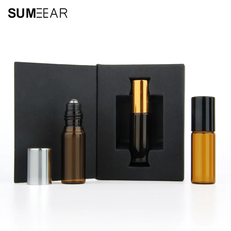 50 шт./лот 5 мл Янтарный мини флакон для духов упаковочная коробка стеклянный рулон на сосуд для эфирных масел пустая бутылка для образцов духов
