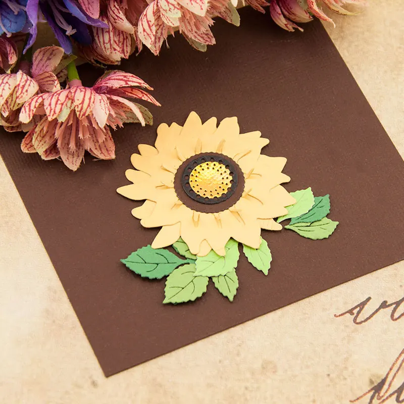 Металлические пресс-формы в форме цветка, форма для вырезания подсолнуха, скрапбукинга, бумаги, рукоделия, ножа, лезвия, перфоратор, трафареты, шаблон