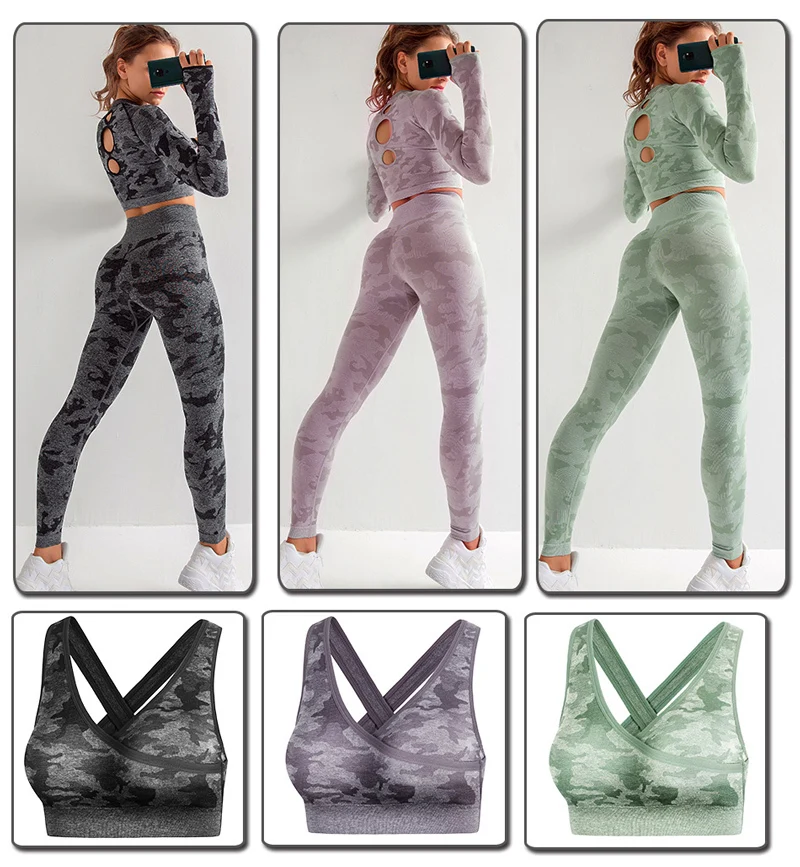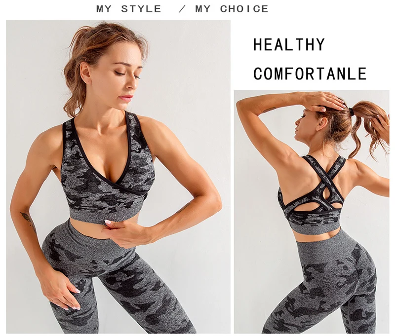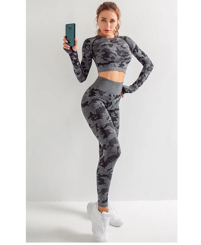 Бесшовный набор для занятий йогой, женская спортивная одежда, камуфляжный спортивный костюм, женский спортивный костюм, женский спортивный комплект, одежда для тренировок, женская спортивная одежда