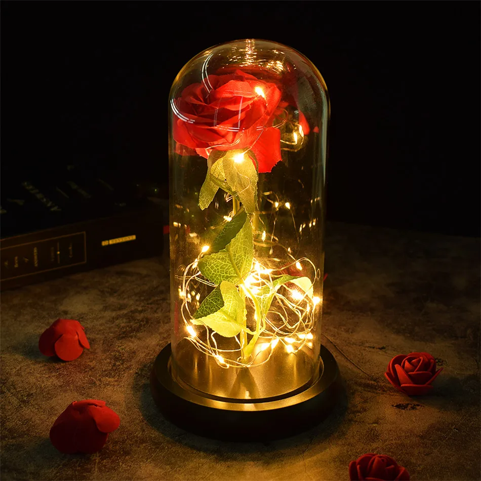 Светодиодная вечная гирлянда в виде розы настольная лампа на батарейках