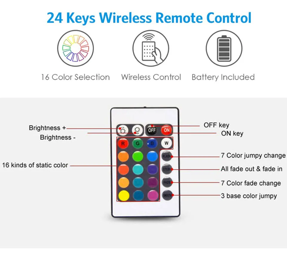 Когда Вы выключите светильник с помощью пульта дистанционного управления, светильник будет иметь функцию памяти. При выключении лампы с помощью выключателя питания лампа не будет иметь функции памяти. Примечание: 2835SMD RGB Светодиодная лента не имеет белого цвета. При нажатии кнопки «W» одновременно появляются красный, зеленый, синий 3 цвета. Спецификация: Тип: светодиодный светильник на батарейках Напряжение: 5 В постоянного тока (источник питания батареи) Водонепроницаемый: не водонепроницаемый Светодиодный Тип: SMD 2835 Длина ленты: 50 см/100 см/200 см/300 см/400 см/500 см Светильник Цвет: белый/теплый белый/RGB ( 24Key дистанционного управления может быть клавишами) Угол луча: 120 градусов Температура хранения. : -40 ~ 80 градусов Цельсия Рабочая температура. : -25 ~ 60 градусов Цельсия Особенности: Гибкая светодиодная лента RGB создает новые и захватывающие, яркие цветовые эффекты освещения, которые когда-то были невозможно достичь. Идеально подходит для освещения бухт, гранул, полки или гардероба или в коммерческих целях, дисплеев продукта, под прилавком освещения этот светодиодный индикатор поставляется на метр в нескольких различных цветах, С внутренней или наружной оценкой. Управляется любыми устройствами с выходным usb-портом 5 В, такими как компьютер, настольный компьютер, ноутбук, планшет, таб, автомобильный прикуриватель. И т. д. Экологически чистый, без излучения, без мерцания, без вреда для глаз человека. Энергосбережение, отсутствие тепла, низкое энергопотребление, стабильная производительность. Эта лента поставляется с 3 м самоклеющиеся легкостью приклеивать ленту практически к любой чистой поверхности практически к любой чистые <поверхности.Смотрите так же другие товары:
