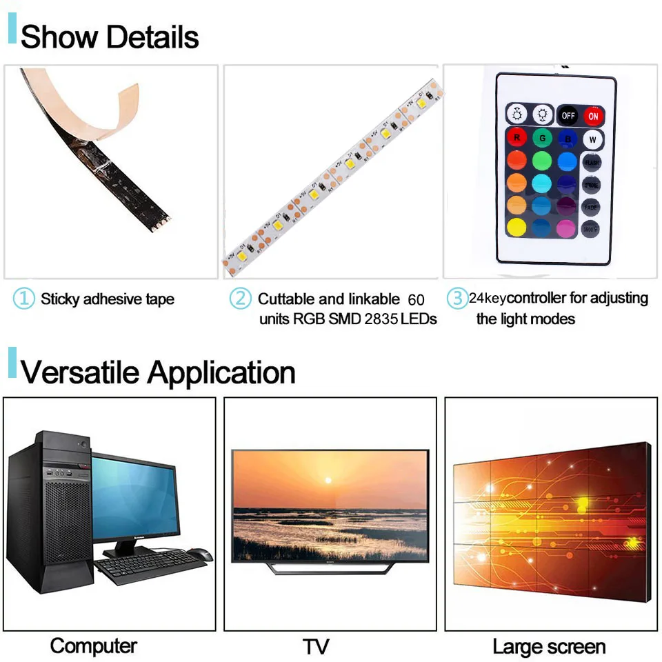 5 В USB Питание 1-5 м светодиодный светильник в полоску ТВ задний светильник ing домашний кинотеатр светильник ing для телевизора с плоским экраном SMD2835 RGB Светодиодная лампа