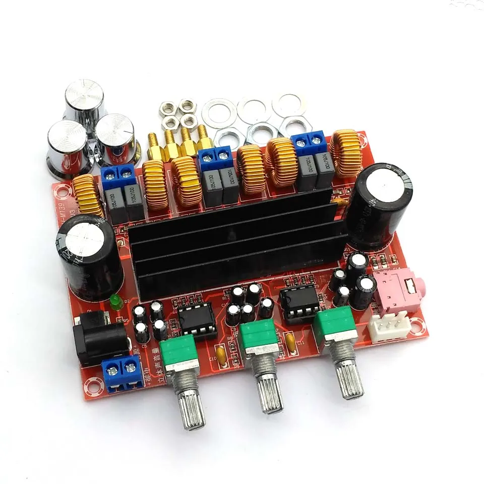 В качестве ядра платы усилителя используются два импортных чипа цифрового усилителя TPA3116D2, одна часть в качестве усилителя мощности левого и правого каналов, другая часть в качестве предварительного мостового драйвера с сабвуфером NE5532, с небольшой, высокой эффективностью, характеристики высокой мощности.