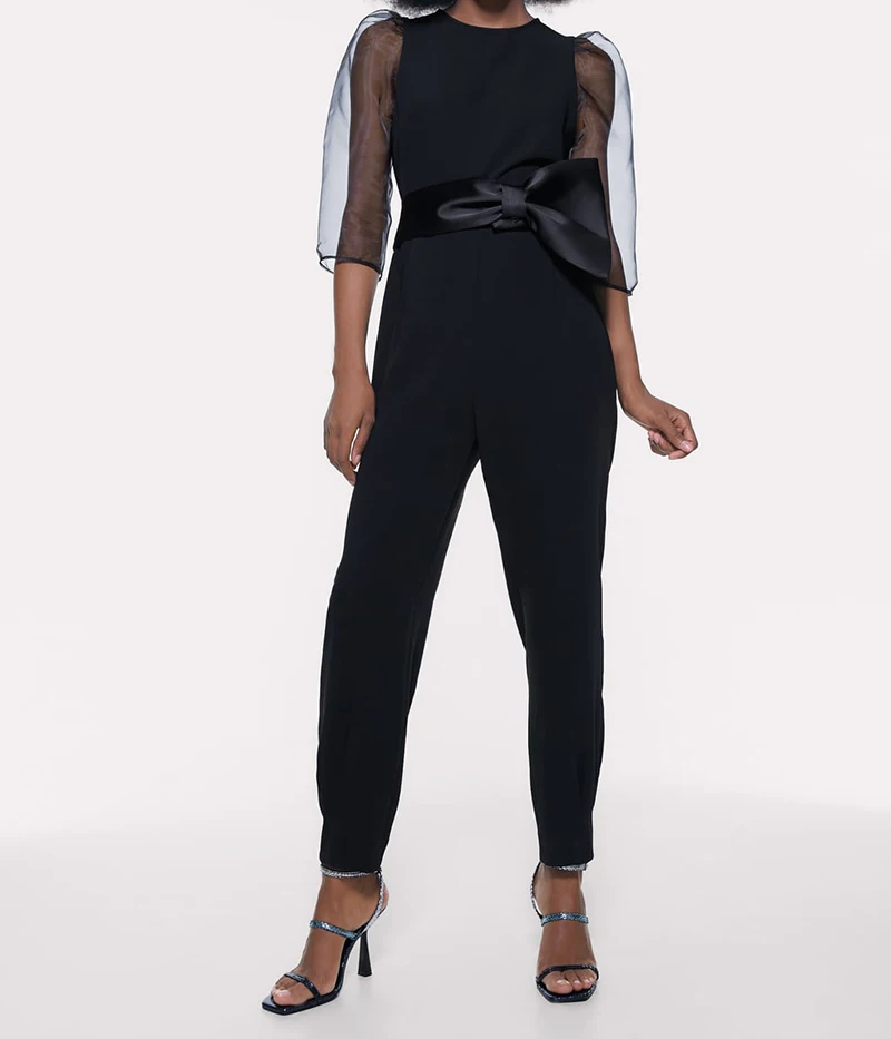 Женский винтажный элегантный сетчатый комбинезон 2020, летний модный женский комбинезон из органзы, вечерние комбинезоны для девушек