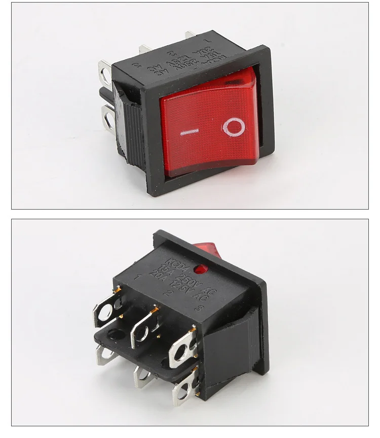 Модель: KCD4 Клемма: 4/6 контактов Местоположение: переключатель Цвет лампы: красный, желтый, синий, зеленый Номинальное напряжение: 16 А, 250 В, 20 А, 125 в перем. Тока Габаритные размеры: 31x25x35 мм/1,2 "x 1" x 1,4 "(Д * Ш * В) Размер установки: 27x21 мм/1,1 "x 0,8" (Д * Ш) Посылка: 1 клавишный переключатель Использование: широко используется в различных бытовых приборах, холодильниках, электрочайниках, диспенсерах для воды, микроволновых печях, промышленном применении, различных станках, вертушках, изобретениях DI и т. д.
