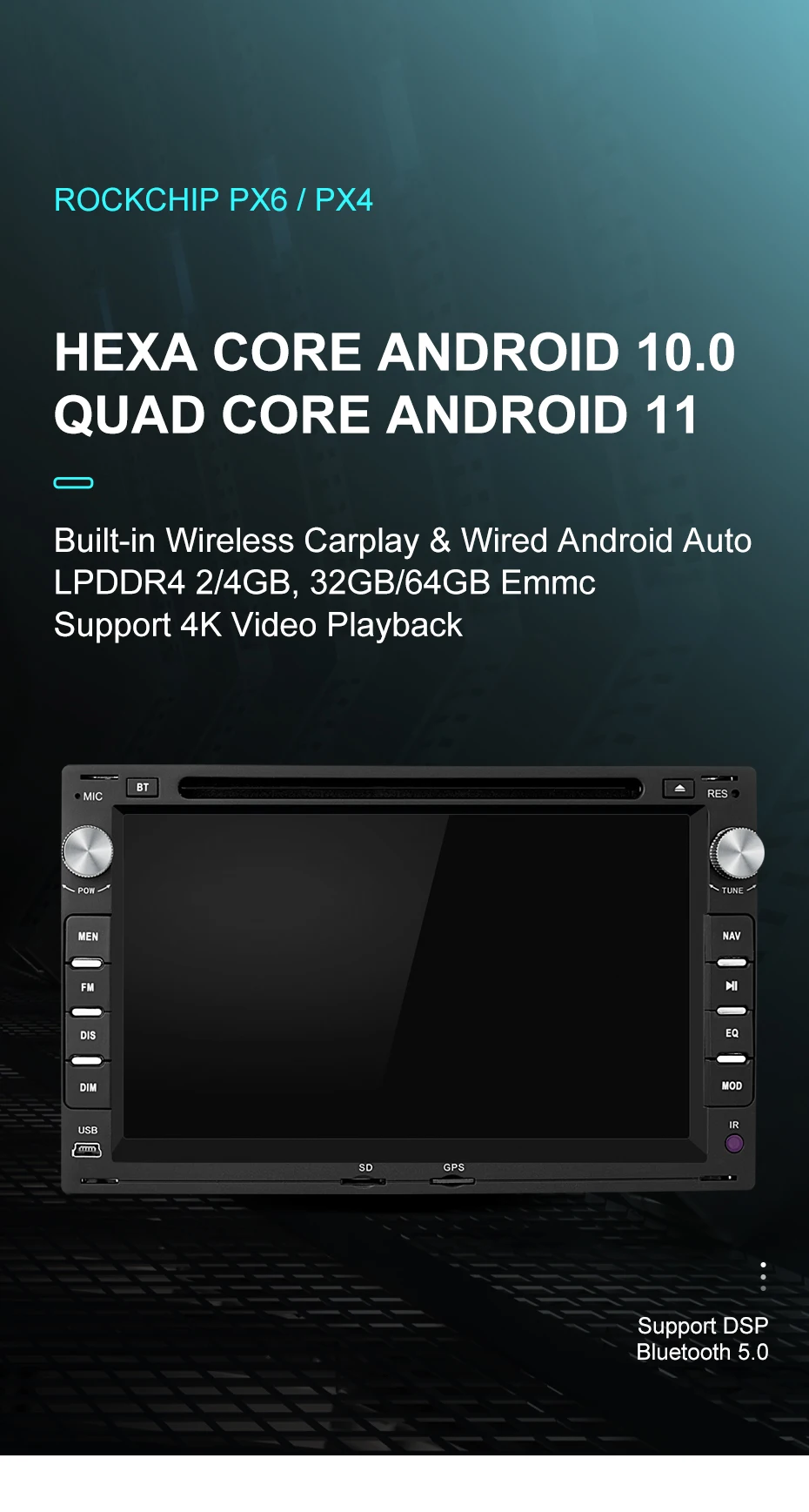 Особенно чип PX4, оснащенный новейшей системой Android 11, нет необходимости беспокоиться о последующем обновлении Android, в результате чего APK не сможет установить. Он имеет очень хорошее соотношение цены и качества и является вашим лучшим выбором.