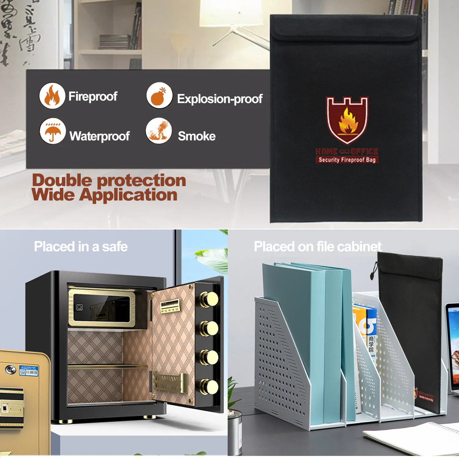 Застежки-молнии и застежки-липучки обеспечивают безопасность хранения и безопасность переноски, идеально подходят для офиса или дома. Это не только огнеупорный, но и водостойкий Чехол, по какой-либо причине он промокает.