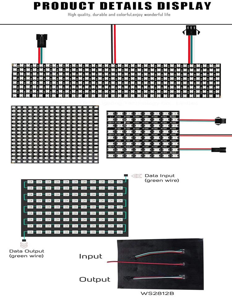 Уведомление о заказе: Цена только светодиодный экран адресуемого пикселя, без светодиодный источник питания и светодиодный контроллер! WS2812B светодиодный панель должна использовать DC5V источник питания, Продукт поставляется с фиксированным режимом изменения освещения, и для самостоятельного управления требуется светодиодный контроллер!