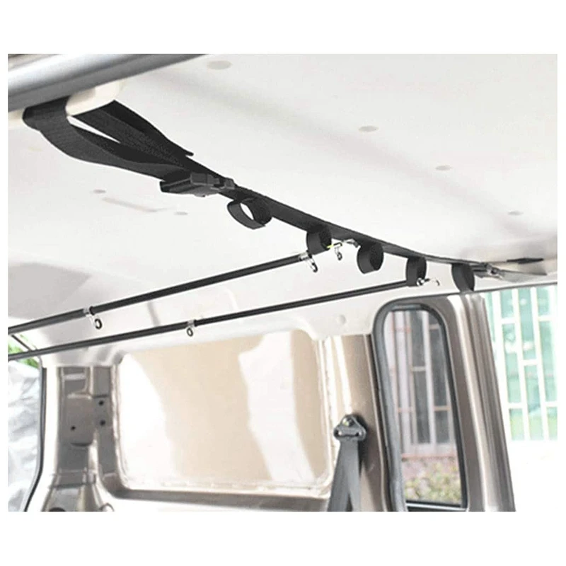 Инновационная система стеллажей для удочек, 5 стержней и катушек, комбинированная емкость, регулируемая длина в соответствии с шириной автомобиля (ширина крепления ремня: 75 см ~ 150 см).