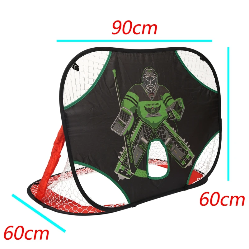 Двусторонний: разработан с нормальной стороной и целевой стороной съемки, так что подходит для ваших различных потребностей. Нормальная сторона идеально подходит детям, поддерживая нормальную хоккейную игру и матч. Другая сторона построена с 5 целевыми отверстиями, которые могут быть использованы для тренировки стрельбы, особенно подходит для тех людей, которым необходимо улучшить его навыки стрельбы.