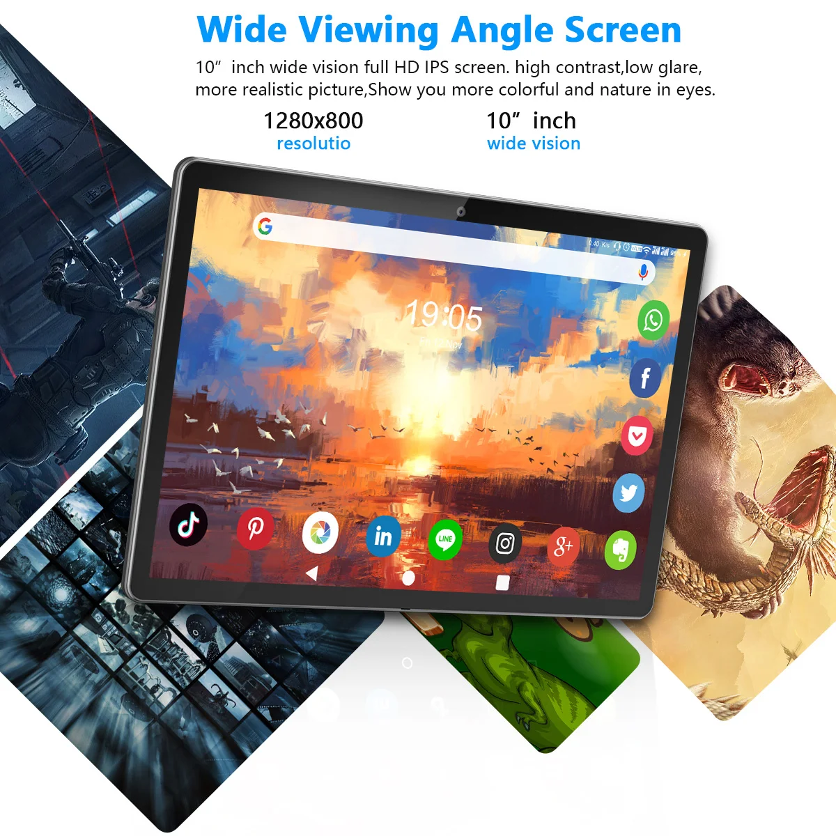 10-дюймовый K105 планшет принимает 1280x800 IPS дисплей, который представляет собой яркий дисплей с vivid цветов для более естественный опыт просмотра со всех сторон.