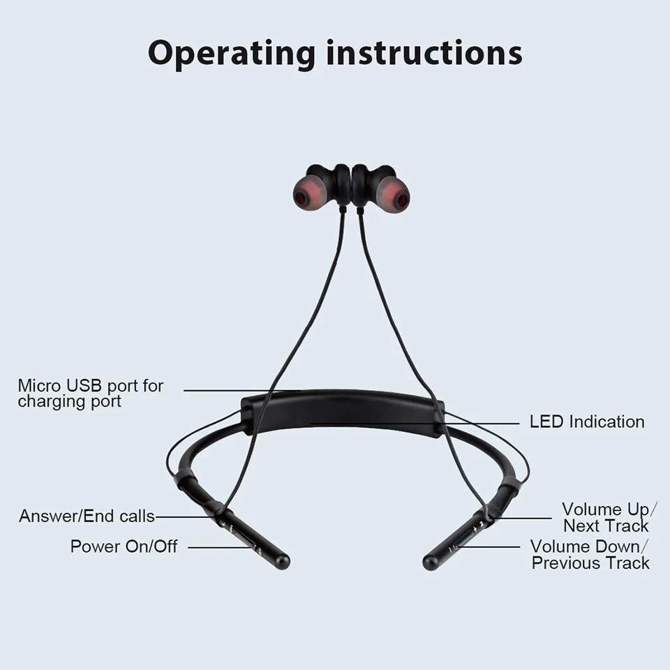 Технология Bluetooth 5,0 обеспечивает более стабильное соединение и более быструю передачу данных, помогая вам наслаждаться более свободной музыкой в комфортном режиме. Очень легкий и удобный дизайн с завязками на шее.