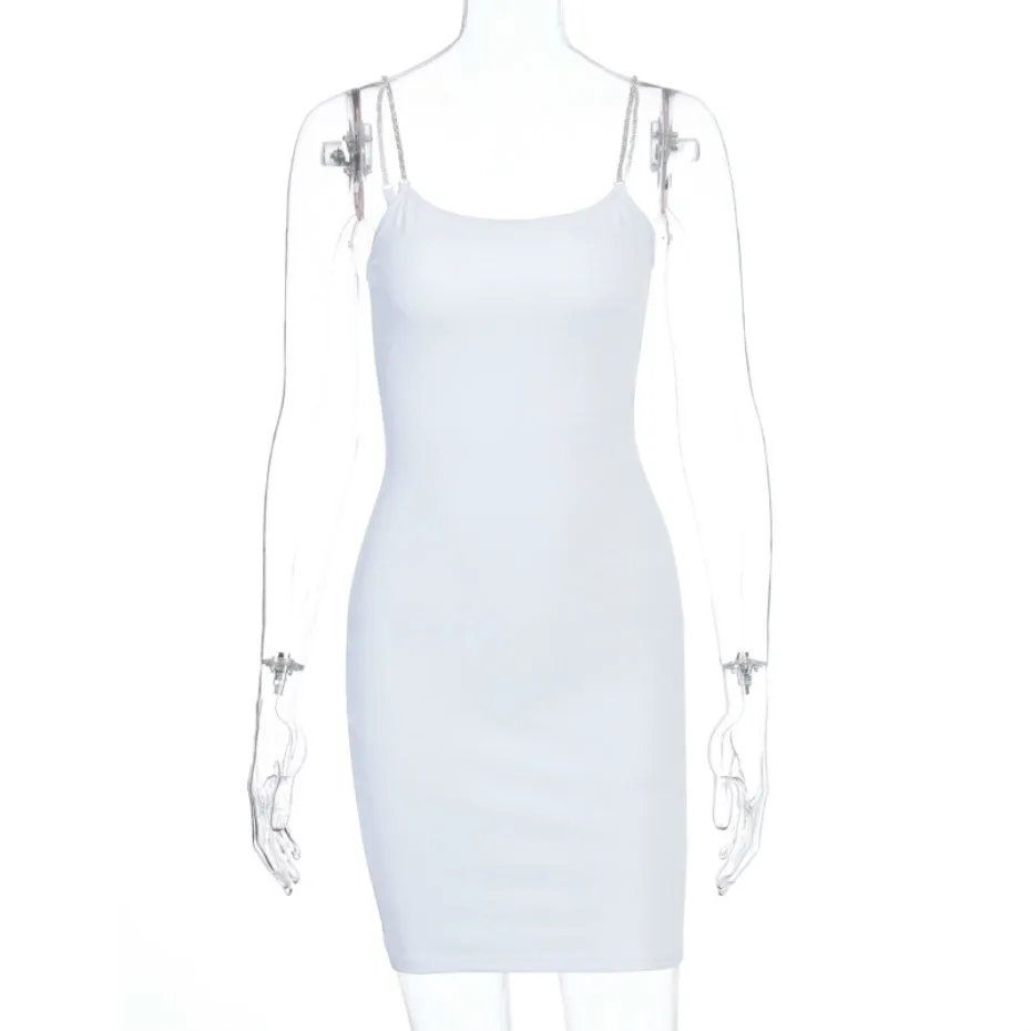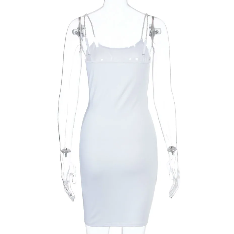 Сексуальные атласные мини платья Missnight облегающее черно белое платье с цепочкой