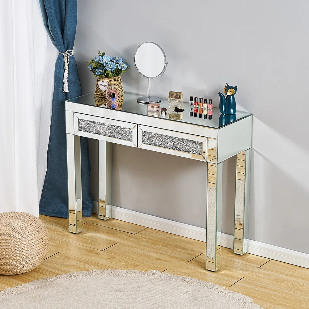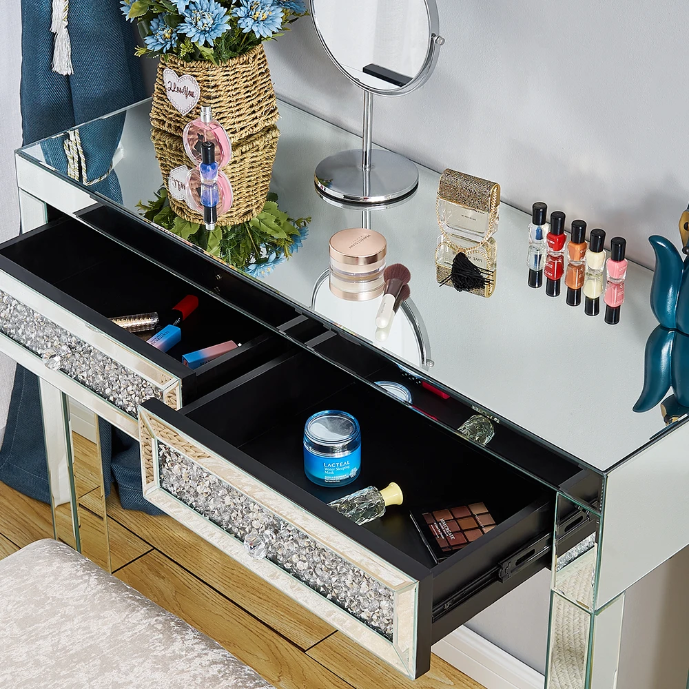 1. Четыре ножки-зеркальное стекло, два больших ящика с маленькими бриллиантами. 2 компактный ящик очень легко открывается и закрывается, с металлическими скользящими двойными направляющими;