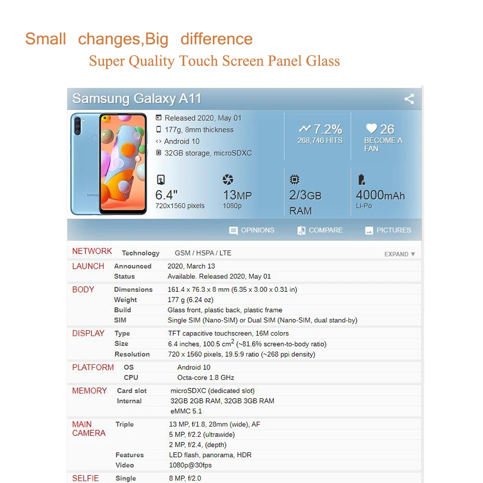 10 шт./лот, для Samsung Galaxy A11 A115F, сенсорный экран, передняя стеклянная панель, ЖК-дисплей, внешний дисплей, объектив A11 A115U, переднее стекло с OCA, замена клея