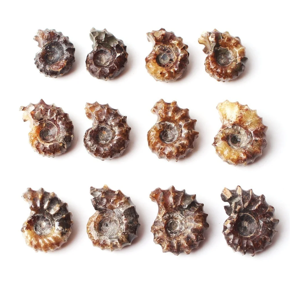 Потрясающе! 1 пара сплит аммонита окаменелости оболочки окаменелости аммония парные подвески ювелирные изделия рейки исцеления