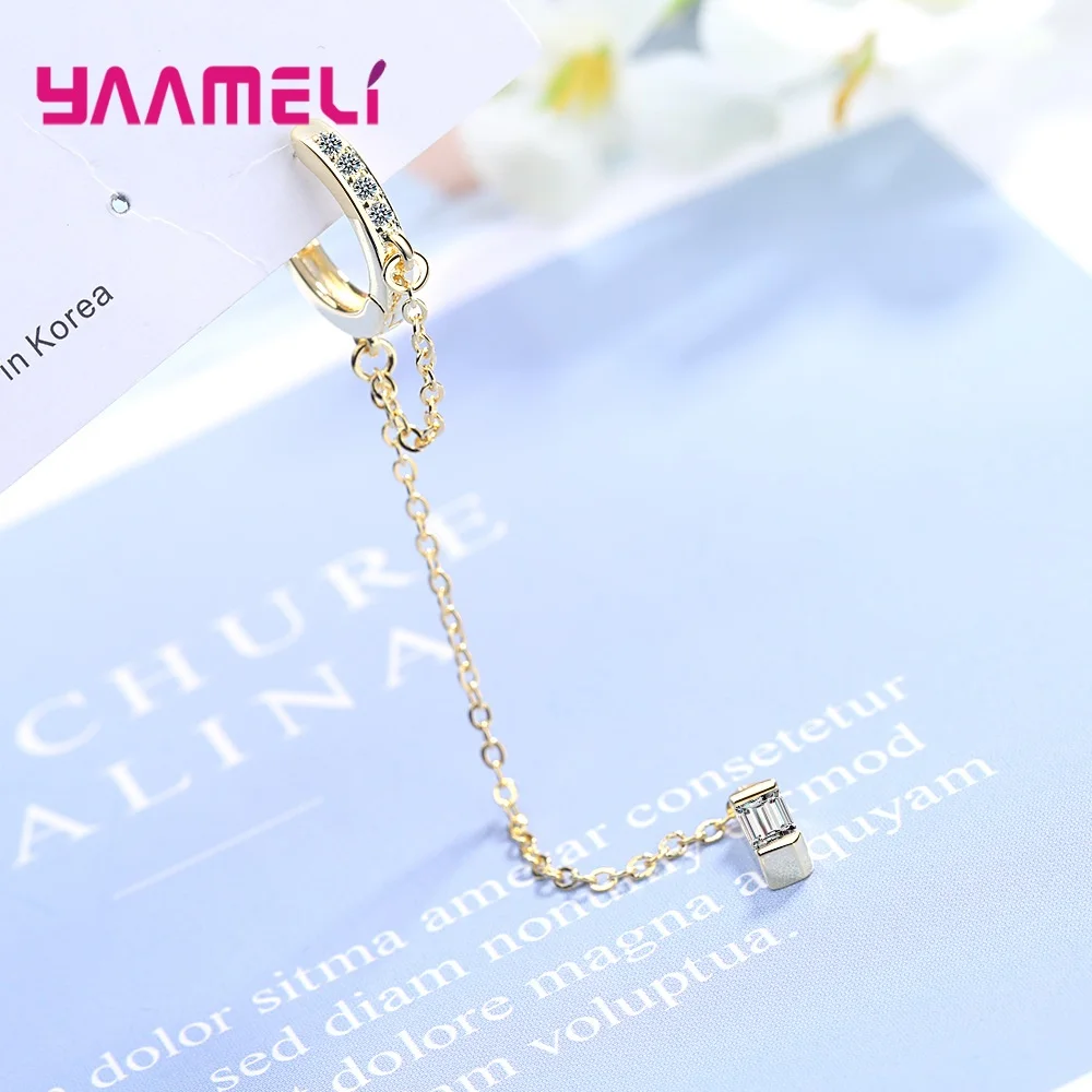 Креативные двойные маленькие серьги-кольца из стерлингового серебра 925 пробы с отверстиями для ушей, цепочка для пирсинга со стразами для женщин, простые ювелирные аксессуары