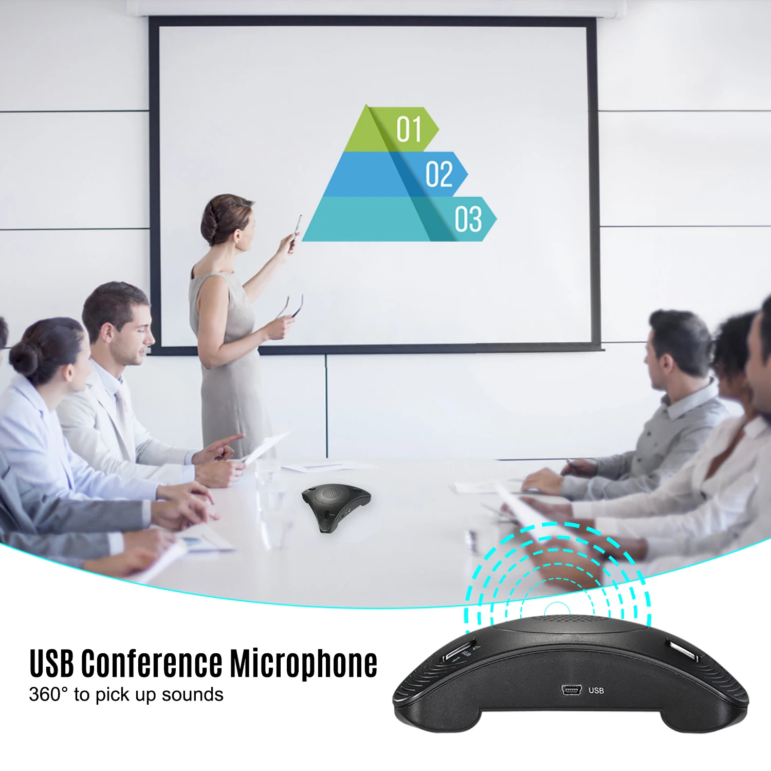 Встроенный динамик и высокочувствительный всенаправленный микрофон, подходит для конференц-залов 20-30 квадратных метров, 360 градусов для звуков, эффективный радиус звукового сигнала-3 метра.