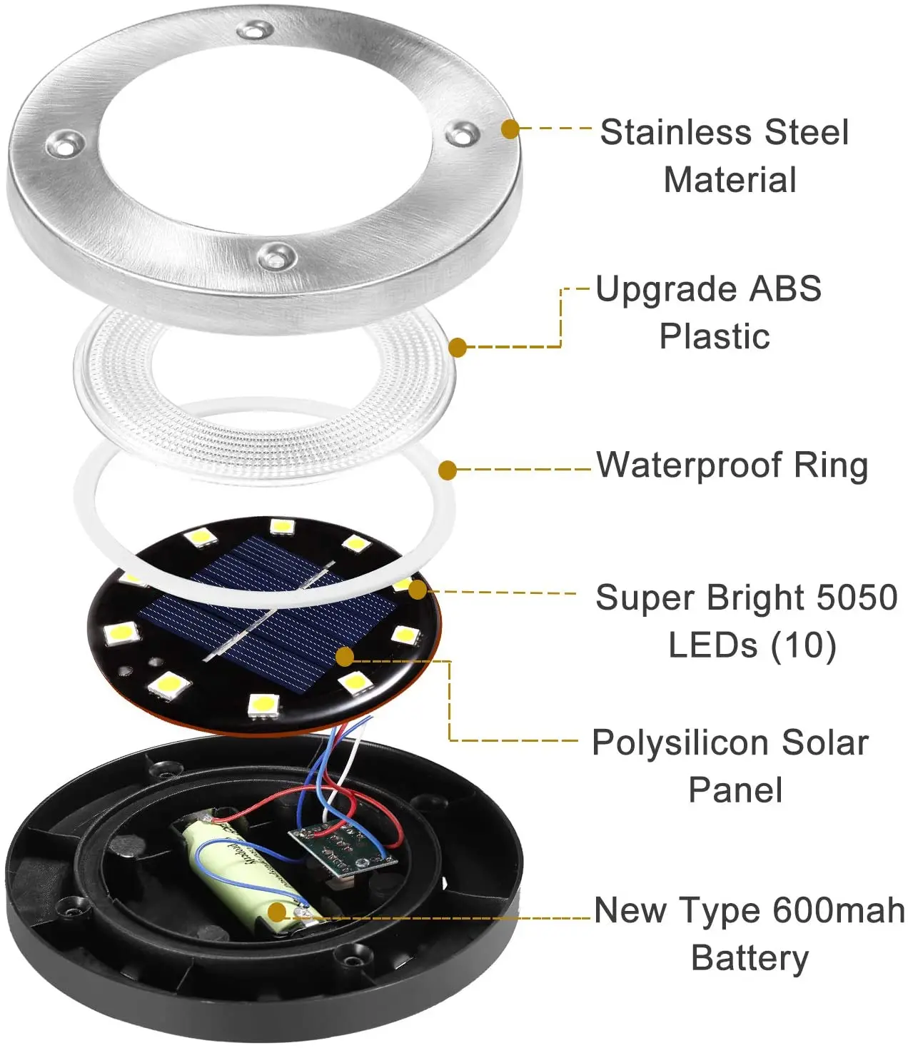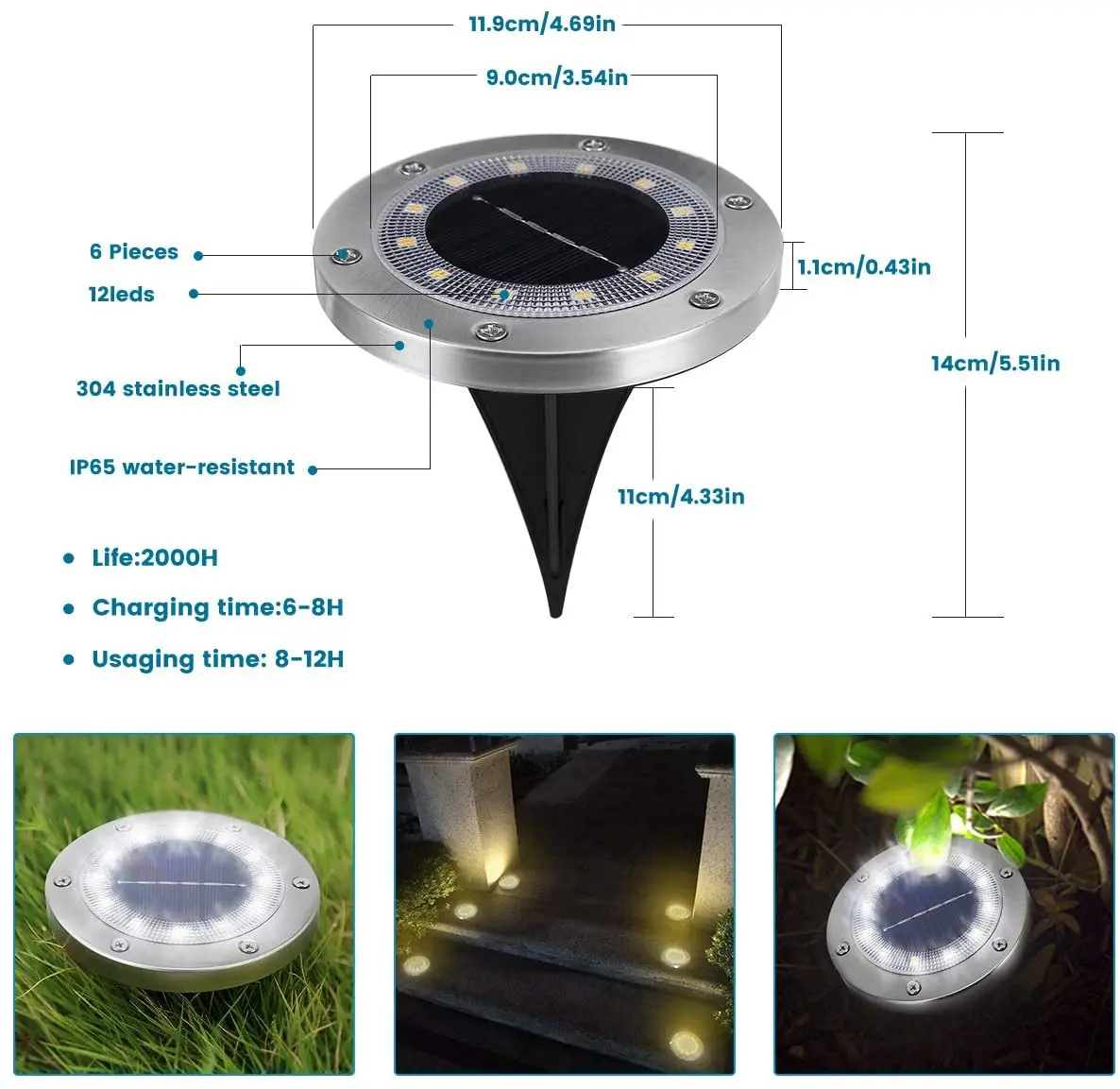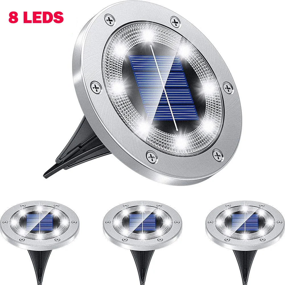 4 Упак. Солнечный наземный свет 8/10/12 светодиодный солнечный диск Открытый водонепроницаемый на земле сад ландшафтное освещение для двора палуба лужайка патио дорога, тропа