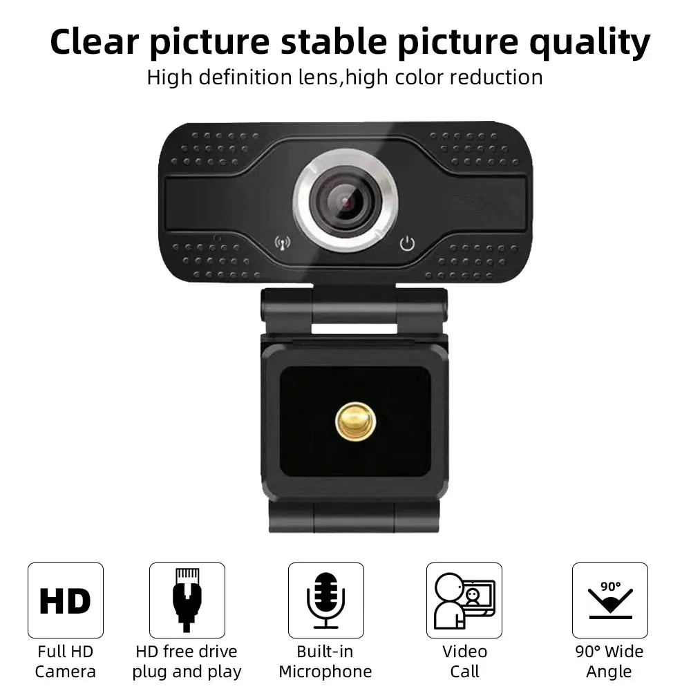 Особенности: -Встроенный звукопоглощающий микрофон, ваш голос может быть услышан четко за 8 метров. -Отличное качество и изысканный внешний вид. -2 м пикселей, высокое разрешение и настоящие цветные изображения. -Вращающееся основание, вы можете регулировать угол, как вам нравится. -Специализированный оптический объектив, высокая точность. Предназначен как для ноутбука, так и для настольного компьютера. -Автоматический баланс белого, Автоматическая коррекция цвета. Ручное регулируемое фокусное расстояние. -Поддержка XP2 или выше системы, такие как Vista, Win7, Win8, Win10 etct. Технические характеристики: -Чип DSP: без водителя -Датчик изображения: CMOS -Линзы: стеклянные линзы -Фокусное расстояние: 20 мм-бесконечность -Высокое разрешение: 2 м пикселей -Разрешение: 1920*1080P -Частота кадров: 30 кадров в секунду -Длина линии: 150 см Содержимое упаковки: -1 веб-камера -1 х Руководство пользователя