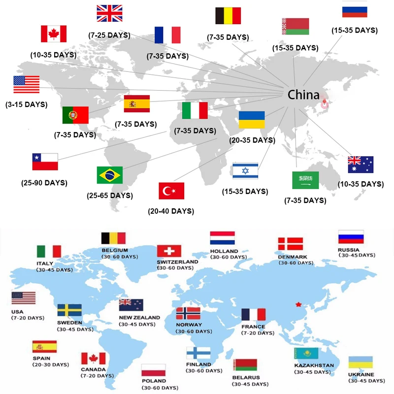 Usually we send out goods by China Post Air Mail for free shipping, about 7-35days can arrived your hands.