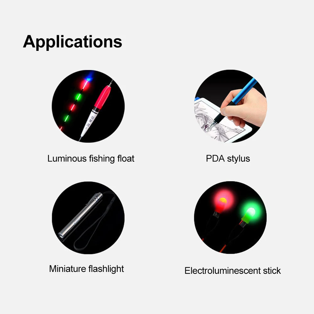 Подходит для светящегося рыболовного поплавка, миниатюрного фонарика, электролюминесцентной палки и так далее.