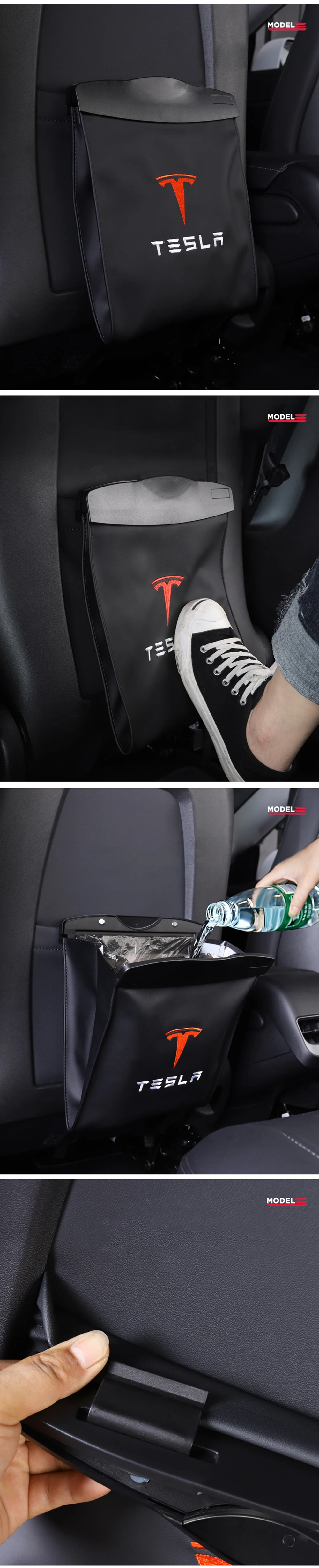 Описание: 100% Фирменная Новинка Материал: кожа Подходит для Tesla Цвет: черный Посылка включает в себя: 1 х Автомобильный мусорный мешок