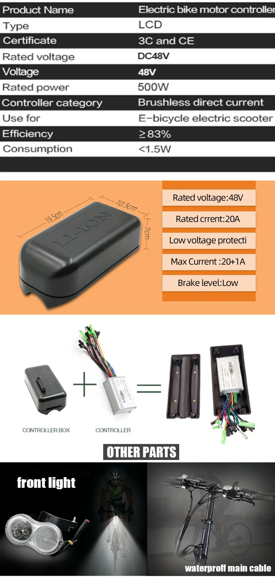 Контроллер для электрического велосипеда 24 В/48 В/36 В/60 в 350 Вт бесщеточный