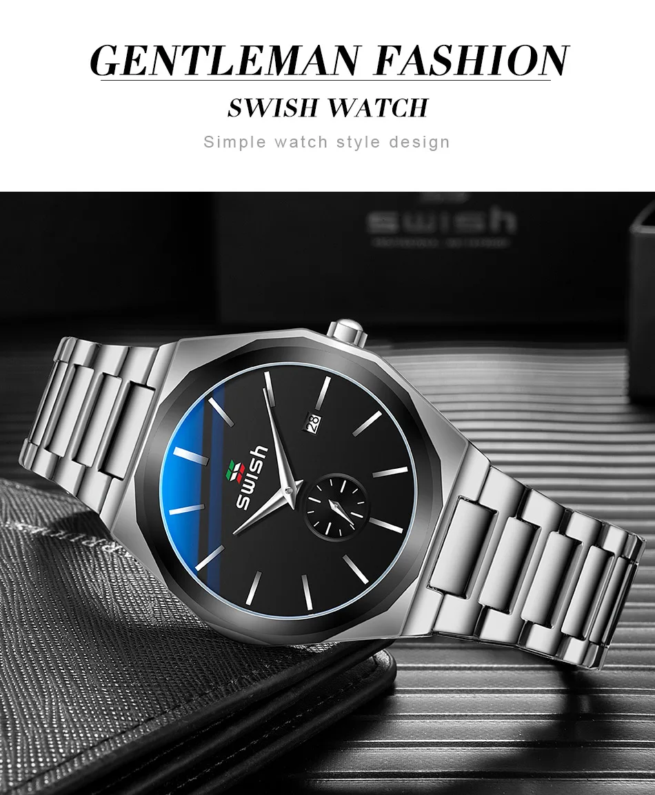 Бренд: SWISH Стиль: спортивный, Повседневный, деловой, модный Механизм: оригинальный кварцевый механизм Основная особенность * 100% новые и высококачественные ** 3 АТМ/30 М Водонепроницаемость (поддержка холодного душа и плавания, не используйте часы под водой, не поддерживайте горячую воду); *** Чехол из сплава; **** Качественная нержавеющая сталь 1 * набор = 1 * SWISH Watch