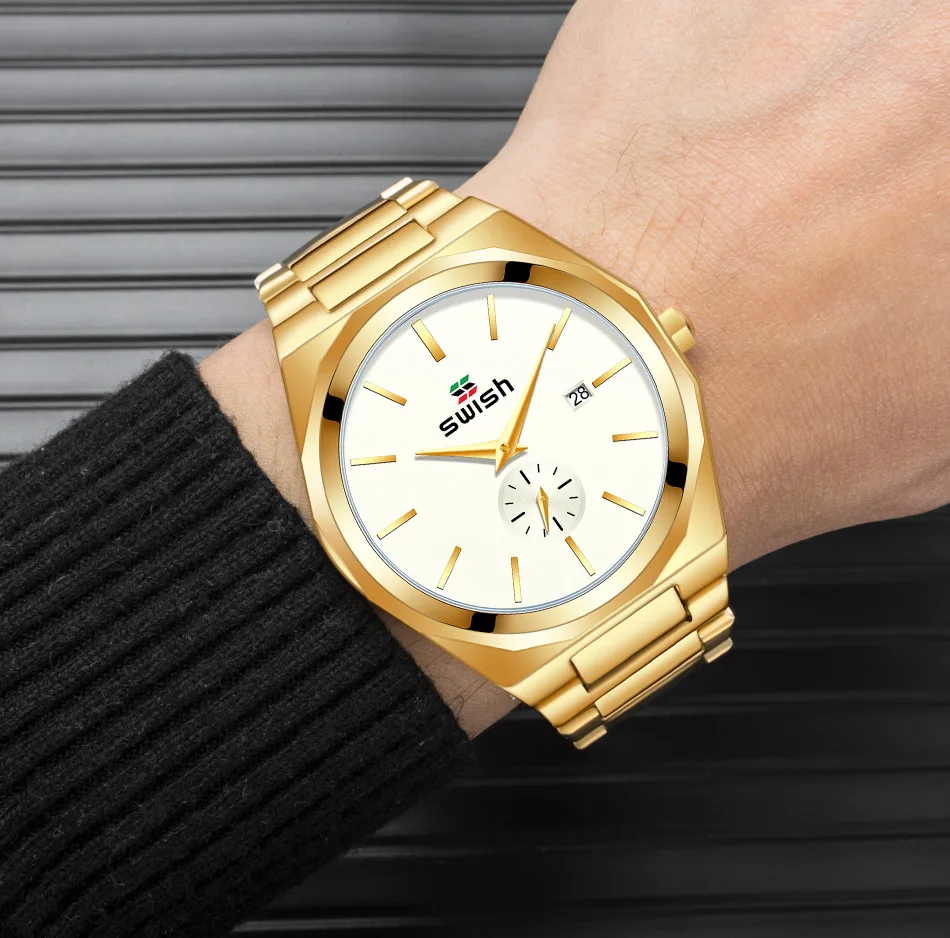 SWISH мужские водонепроницаемые часы 2020 кварцевые часы из нержавеющей стали золотые модные спортивные наручные часы с хронографом мужские Heren Horloge
