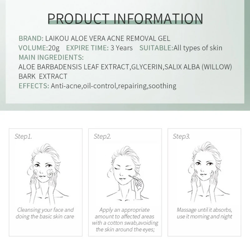 Богаты экстрактом алоэ для питания кожи, восстановления акне, повышения жизненного тонуса кожи и улучшения эластичности кожи, глубокого проникновения в вашу кожу для ускорения обмена веществ, способствуют тумоведению клеток кожи, эффективно поддерживает молодость кожи, попрощайтесь с чувствительной кожей и восстанавливайте акне, антиоксидантное, Отбеливающее, увлажняющее