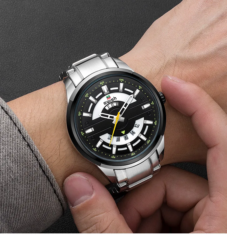 SWISH мужские часы с календарем модные спортивные часы из нержавеющей стали с хронографом водонепроницаемые военные кварцевые наручные часы мужские Reloj 2020