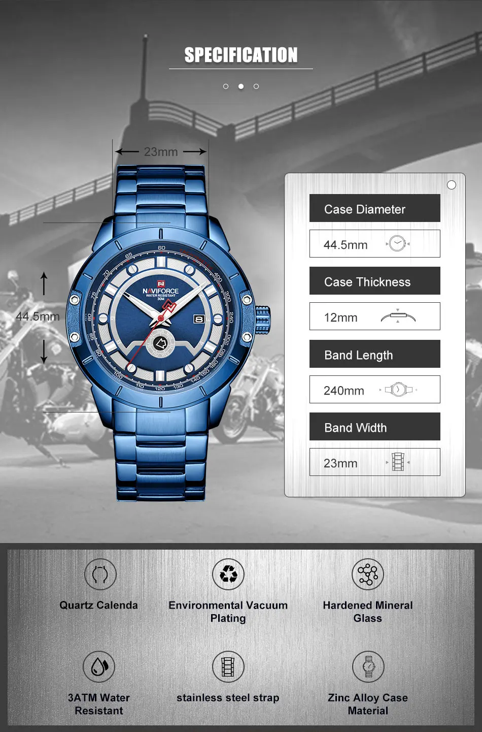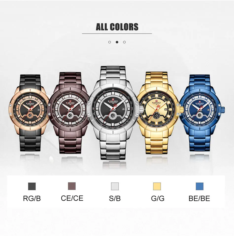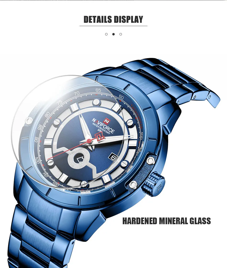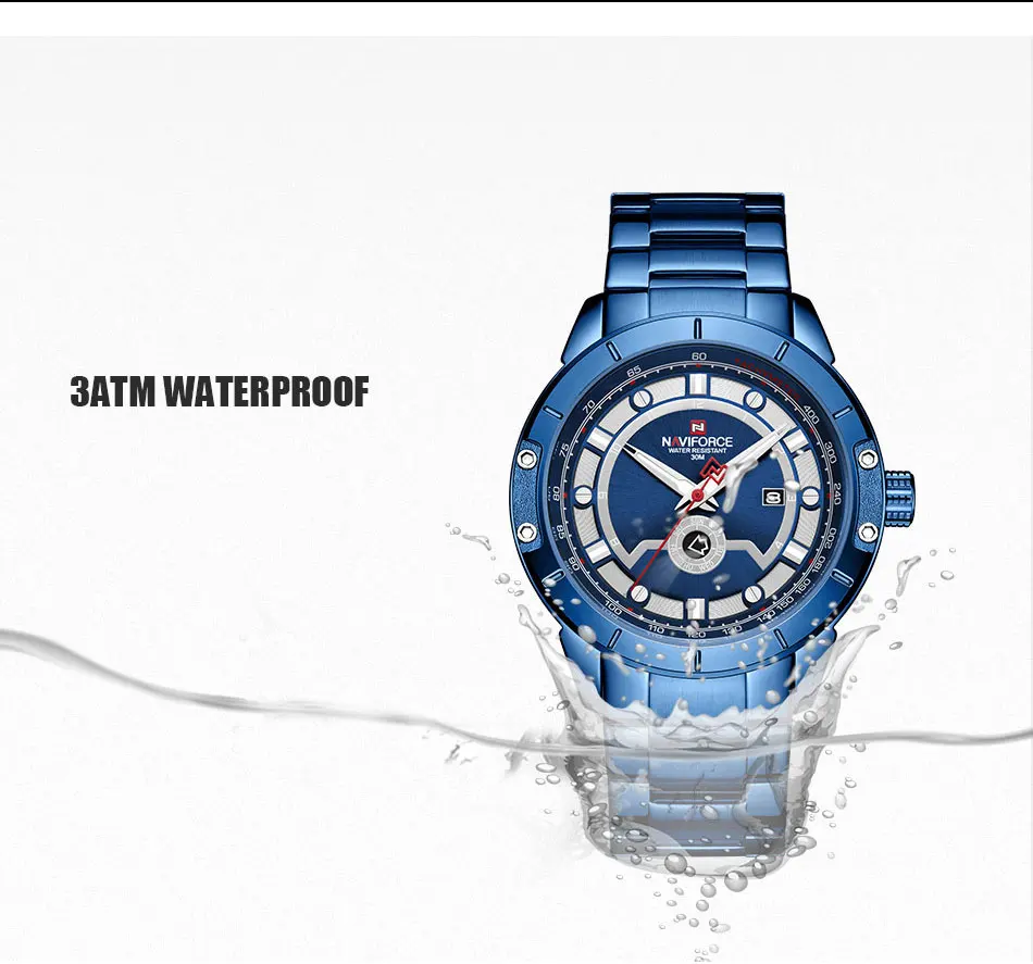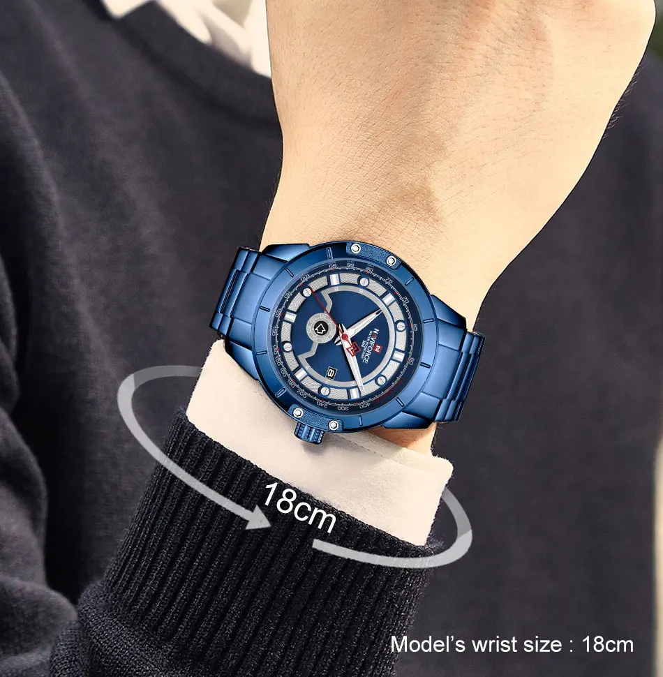 Товар: оригинальные мужские часы NAVIFORCE с календарем Описание 100% новый с биркой и высоким качеством Модные спортивные мужские часы в стиле милитари Водонепроницаемый (ручная Стирка) Роскошные повседневные часы/Отображение даты недели Высокое качество полностью стальной ремешок для часов Технические характеристики Материал корпуса: сплав Диаметр корпуса: 44,5 мм Толщина корпуса: 12 мм Материал ремешка: полная сталь Длина ремешка: 240 мм (в комплект входит Cse) Ширина ремешка: 23 мм Вес: 150 г Идеально подходит для всех видов бизнеса, повседневного использования, занятий спортом на открытом воздухе, занятий в помещении или ежедневного использования.