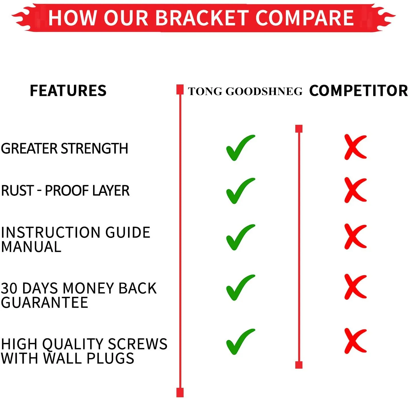 🔧Наши плавучие кронштейны полки являются идеальным дополнительным решением для хранения домов, где пространство ограничено, потому что все кронштейны скрыты внутри полки. Получите его сейчас и почувствуйте себя иначе! 🔧Не тратьте свое время! Это 100% без риска! 🔧Нажмите «Добавить в корзину» и «купить сейчас». TONG GOODSHNEG эффективная команда проектирует этот продукт для домашнего декора, который очень важен для хранения деревянных досок. Наши исследователи проектируют и тестируют продукт несколько раз, так что вы получите прекрасный опыт. 🔧Мы специализируемся на различных видах высококачественных кронштейнов для полок, а также на латунном домашнем декоре. Чтобы вы могли красиво украсить свой дом, магазин, ресторан, клинику, офис, школу и т. д. 🔧Таким образом! То, что вы ждете? Начните украшения... -- Настольный рамы -- Рамки для документов -Альбом рамы -- Стены искусства -- Настенная аксессуары для ванной комнаты -- Зеркала Древний Декор -- Вазы для цветов ✔✔TONG GOODSHNEG складной кронштейн для полки может сделать ваш дом более чистым и аккуратным после того, как вы разместите кусок деревянной доски на этих кронштейнах. Между тем, это может принести художественные ощущения в ваш дом. Шарнирный замок на 90 градусов. Когда вы хотите свернуть стол, просто нажмите на кнопку отпускания. ✔✔Отличная производительность подходит для ограниченного пространства, когда вы хотите, чтобы Рабочая поверхность, которая может быть сложена вниз и вне пути. Помогает организовать вашу комнату. ✔✔Эти складные кронштейны идеально подходят для многих самостоятельных работ по дому. Вы можете использовать стальные складные руки, чтобы построить складную скамейку на вашем заднем дворе забора для дополнительных сидений; ✔✔Используйте, чтобы сделать складной стол для вашей комнаты; Установите складной счетчик в вашем трейлере для барбекю; Постройте стол, который складывается от стены и так далее. ✔✔Купить у TONG GOODSHNEG Прочная металлическая конструкция, сверхпрочная конструкция, высокое качество монтажных изделий ✔✔Эксклюзивный бренд, интеграция производства и маркетинга, гарантия качества; Мы выбираем лучшие материалы, самые изысканные технологии продукта и лучшее качество обслуживания. ✔✔Мы обещаем, что каждый продукт от производственной сборки до продаж, каждая ссылка строго проверяет, чтобы клиенты получили лучшее качество продукции и услуг. ✔✔Специально разработанный и изготовленный для поддержания разумного веса, ваши плавучие кронштейны полки предлагают вам мир вариантов дизайна интерьера. После установки, вы можете быть уверены, что эти плавающие кронштейны полки дадут вам всю жизнь надежной поддержки полки, которая добавит нотку изысканности дизайна в любую комнату, в которой они установлены. Эти скобы придают новый смысл термину «плавающие полки», окрашенному в черный цвет, эти сдержанные скобы позволяют любым полкам, которые вы выбираете, быть звездой шоу, действительно создает внешний вид стеллажей, которые подвешены к стене. ✔✔После правильной установки ваши прочные опоры для полки будут надежно закреплены на стене. Ваши скрытые плавающие кронштейны для полки поставляются в комплекте с требуемыми винтами для крепления. ✔✔Закажите свою сверхмощную глухую полку и создайте этот изысканный вид плавающих полок с качеством подде