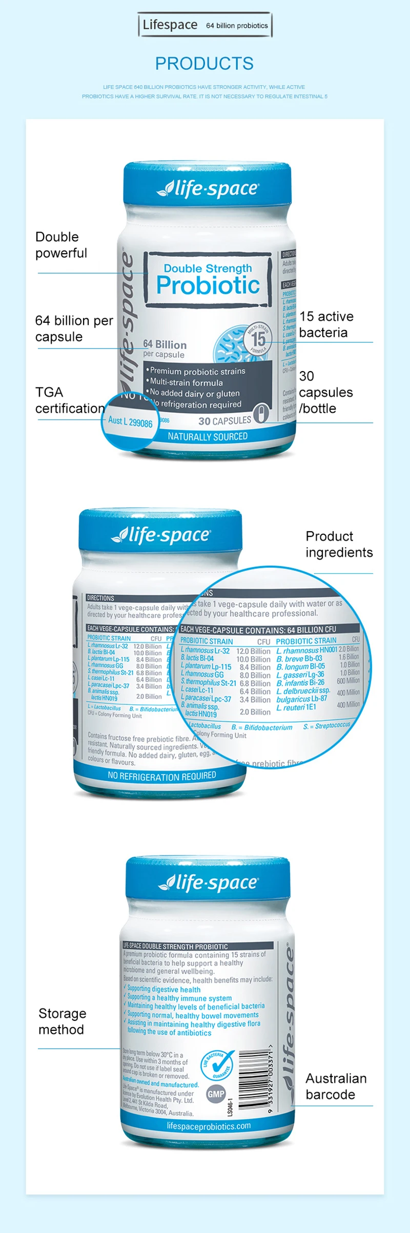 Пробиотические капсулы с двойной прочностью и жизненным пространством 30