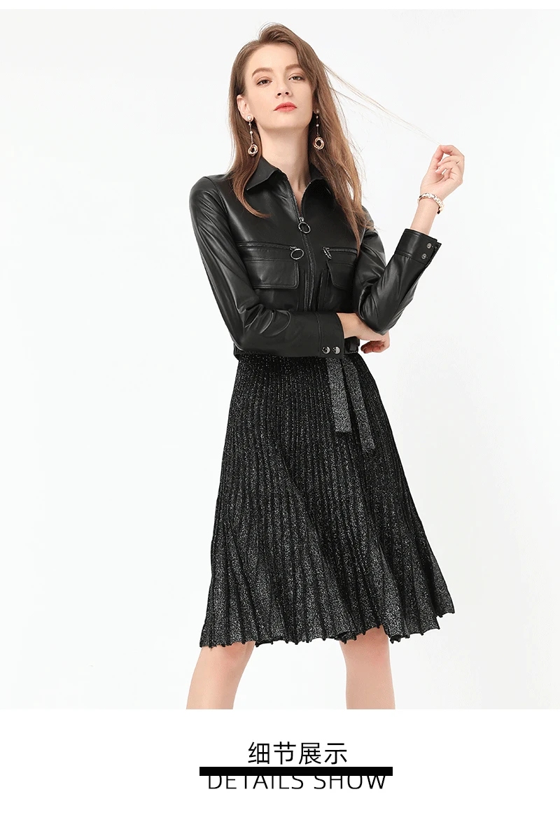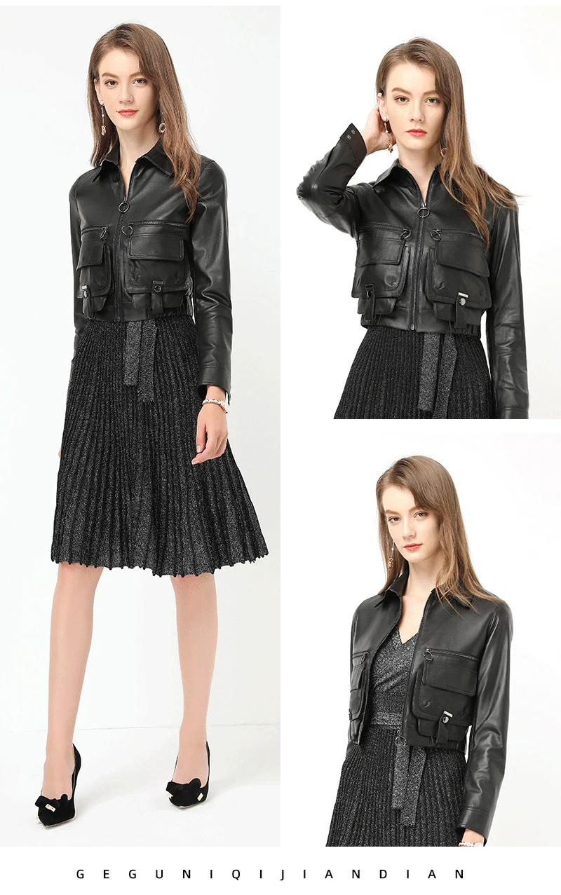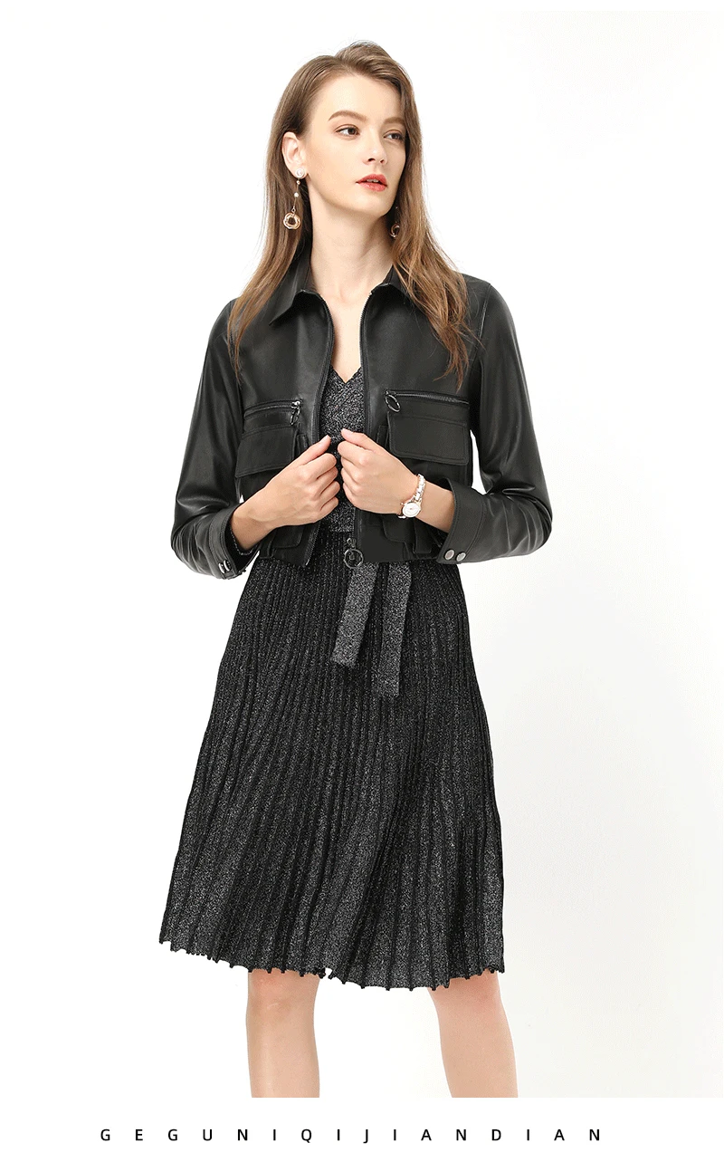Женская кожаная куртка из натуральной овечьей кожи зимняя с воротником
