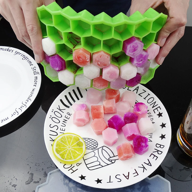 【 Не прилипает и легко снимается-гибкий силиконовый материал хорошо формирует дно, и его можно легко скручивать или толкать снизу, чтобы легко освободить кубики льда. Силиконовые ледяные подносы рекомендуется оставить холодильник на некоторое время легче, чтобы освободить лед, и мягкий силиконовый материал не сломается после замораживания в течение длительного времени. Лоток для льда, Складывающийся компактный размер, подходит для любого домашнего холодильника, общего мини-холодильника.