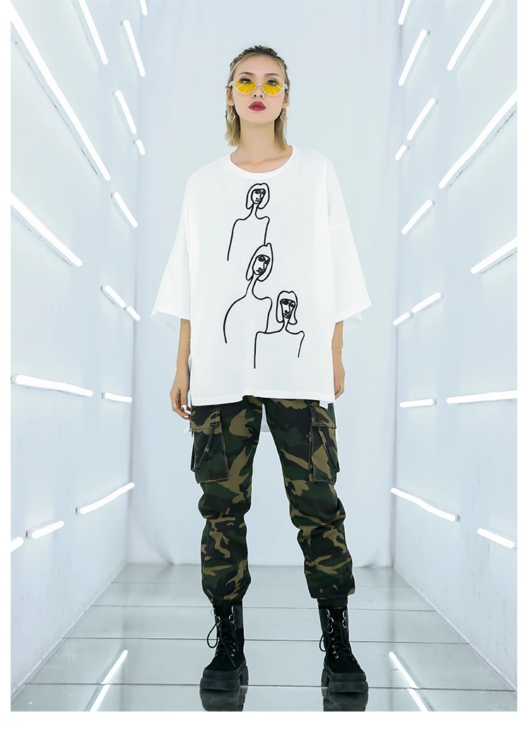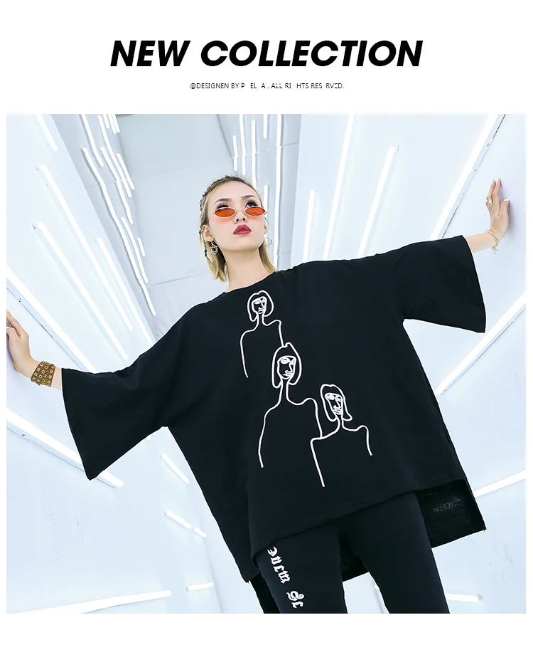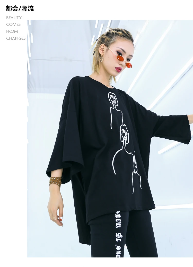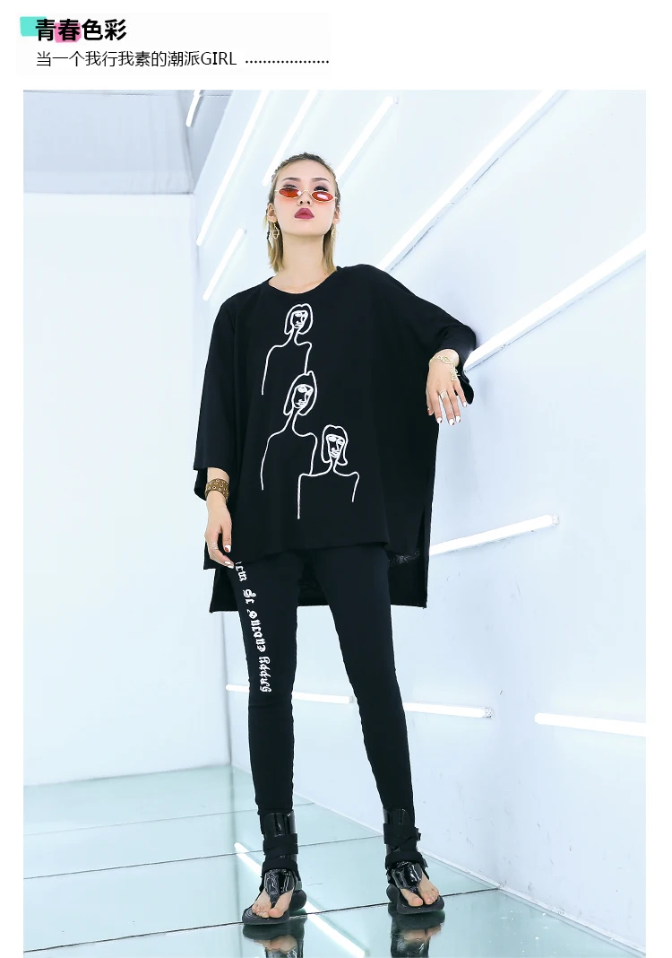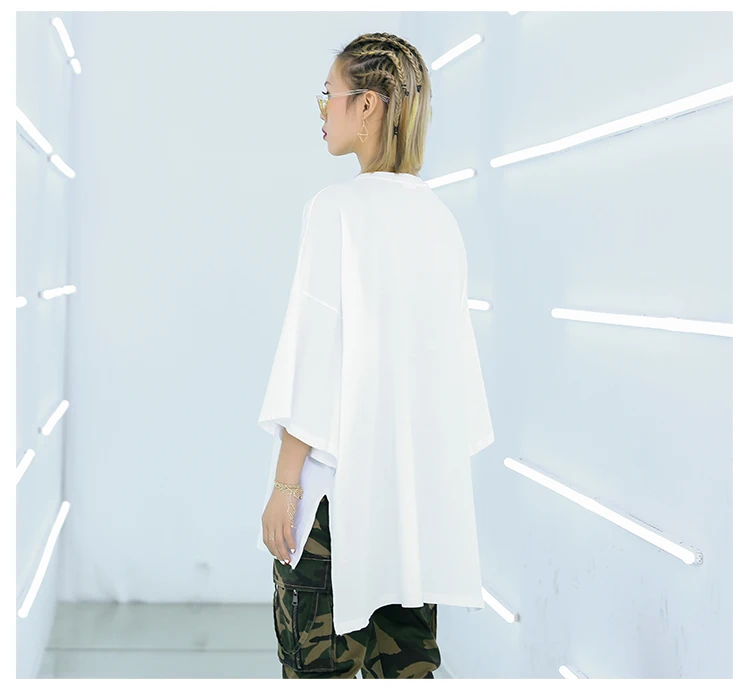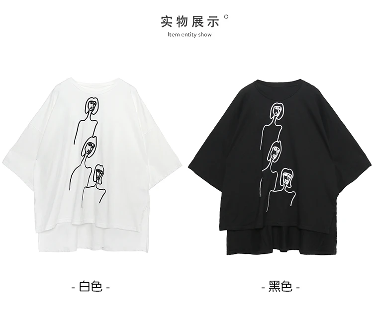 Летняя футболка размера плюс, Асимметричный топ с короткими рукавами черного и белого цвета QYF2642