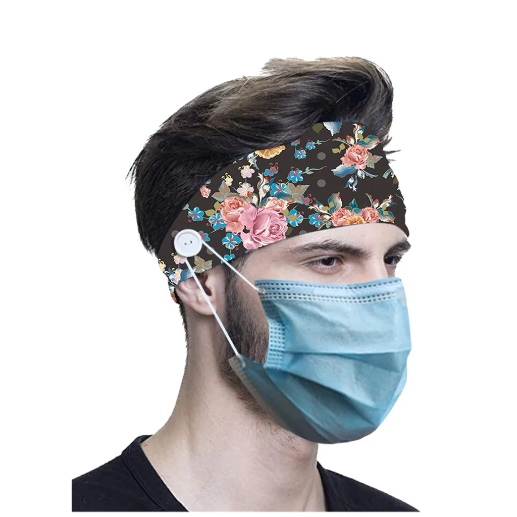 Мужская и Женская повязка от пота на голову с кнопками для бега Йога Эластичные аксессуары для волос повязка на голову