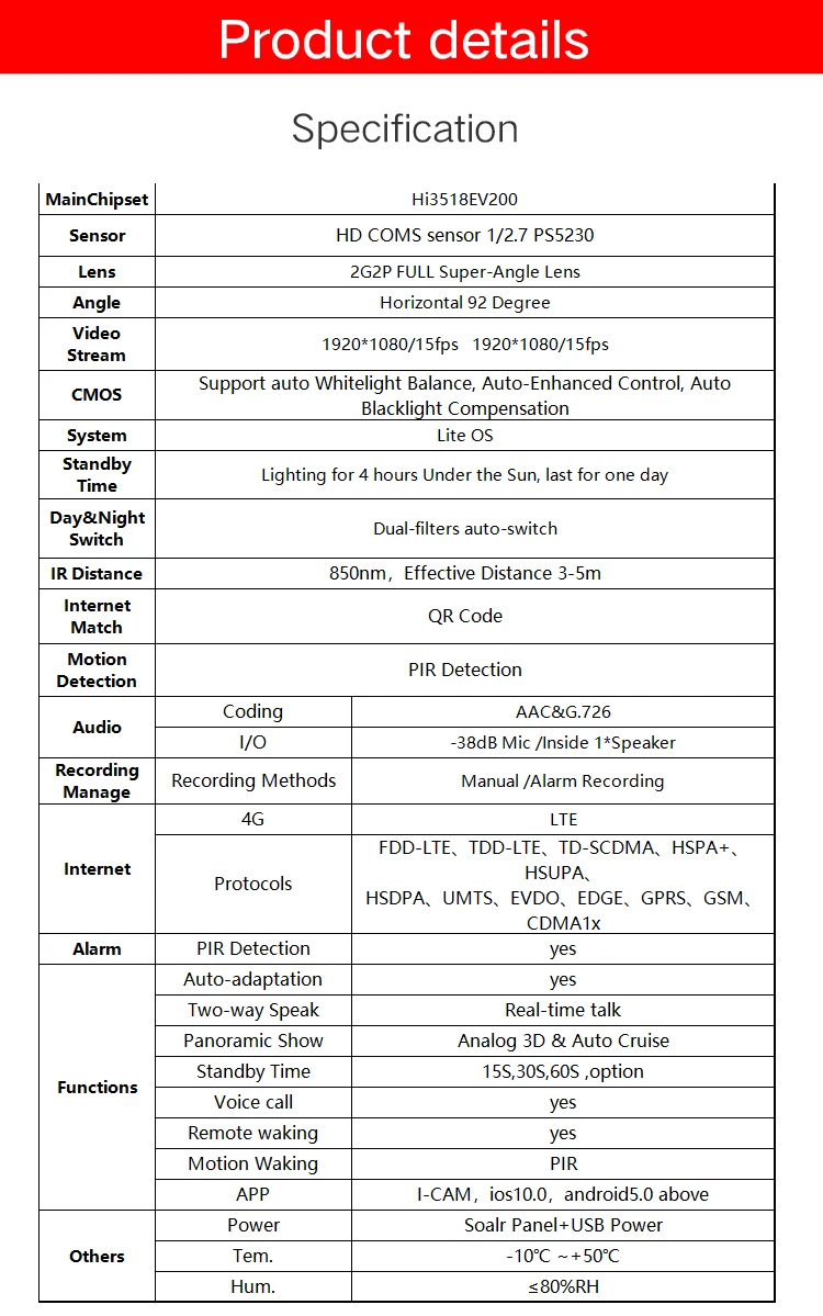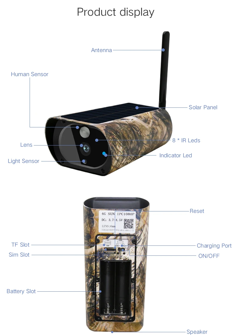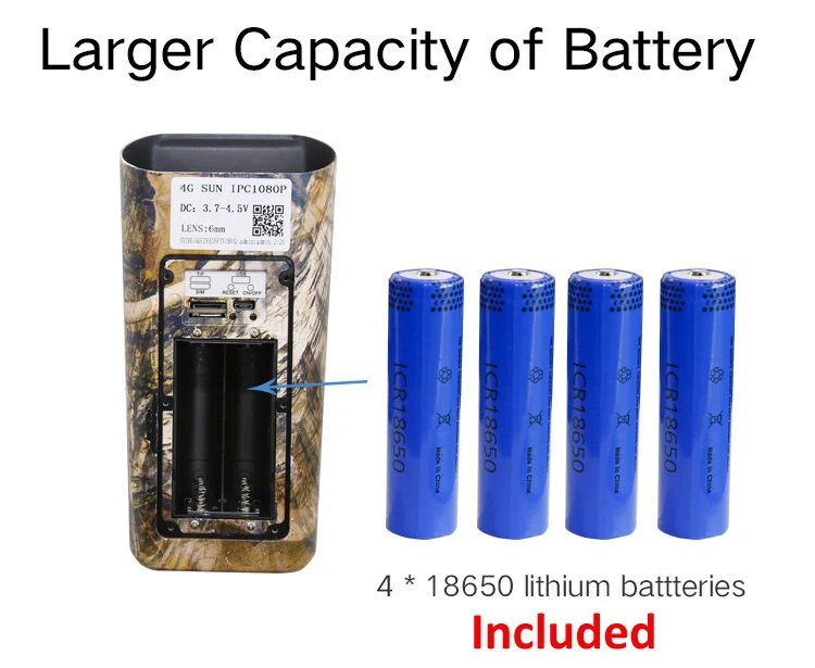 4G camera includes camera + 4pcs 18650 batteries + accessories